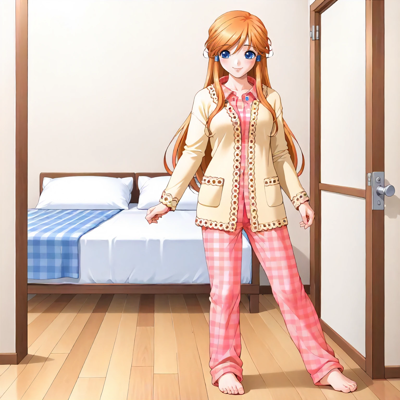 pajamas,plaid shirt,yellow cardigan, pink plaid pants,