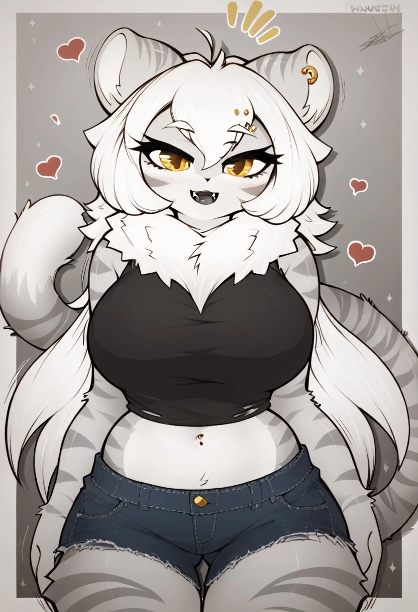 ivory, tiger, tiger girl, white tiger furry, white fur, yellow eyes, big breasts, wide hips