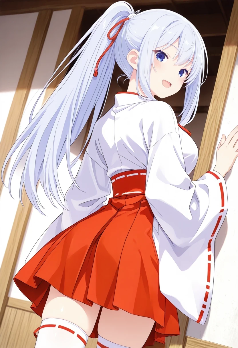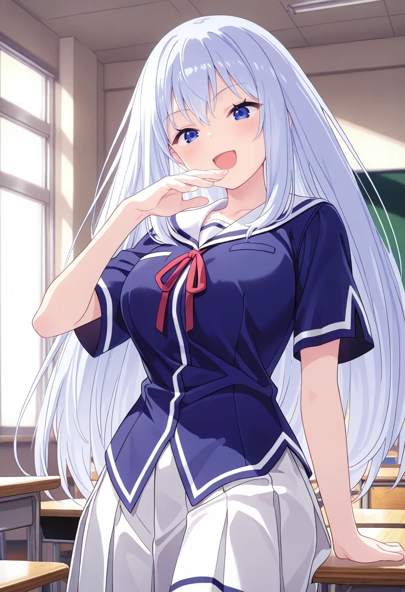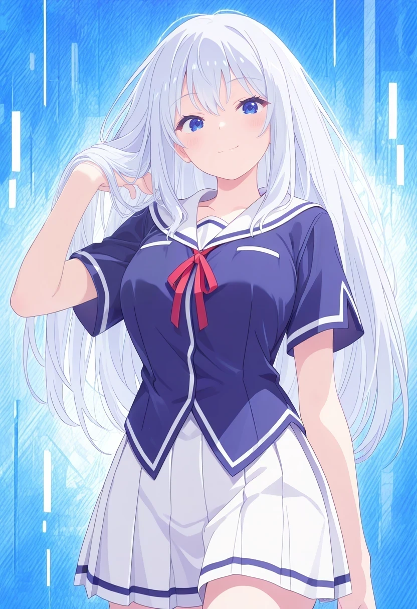 serafuku,red neck ribbon,blue shirt,white skirt,pleated skirt,