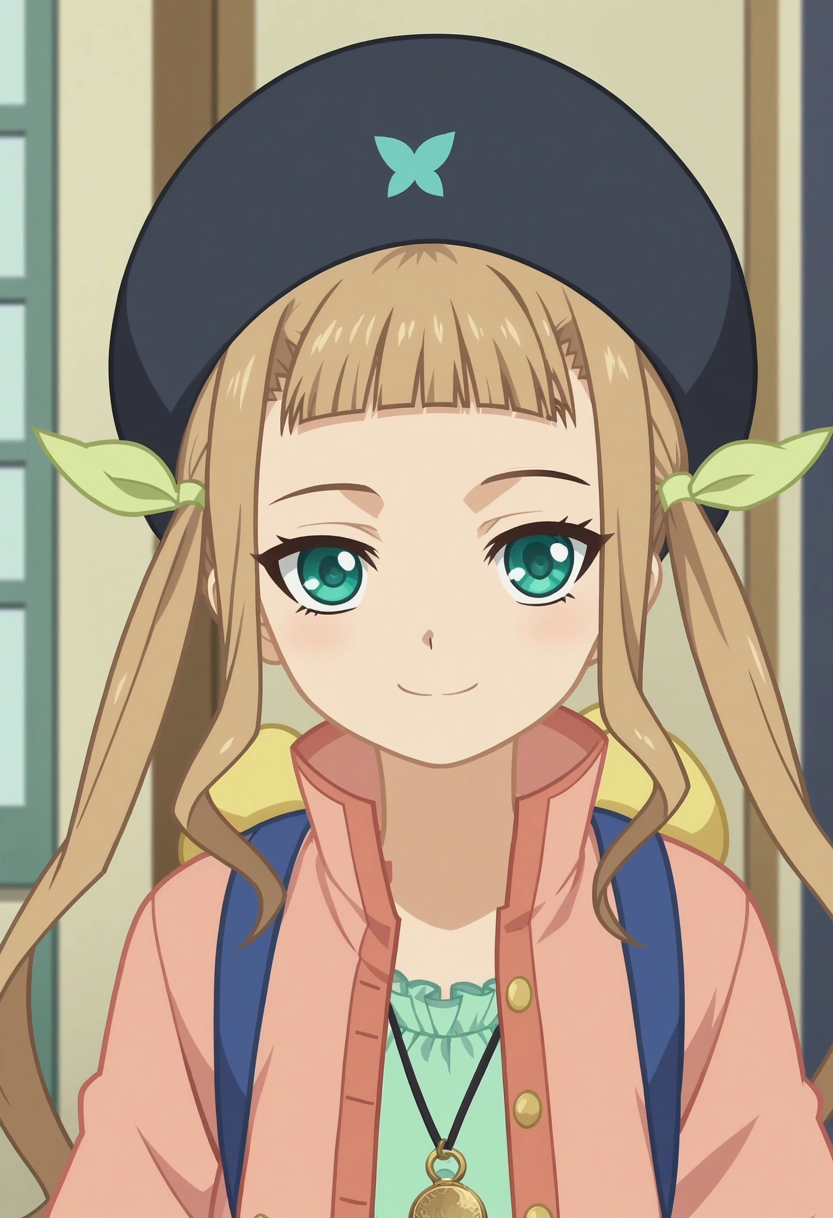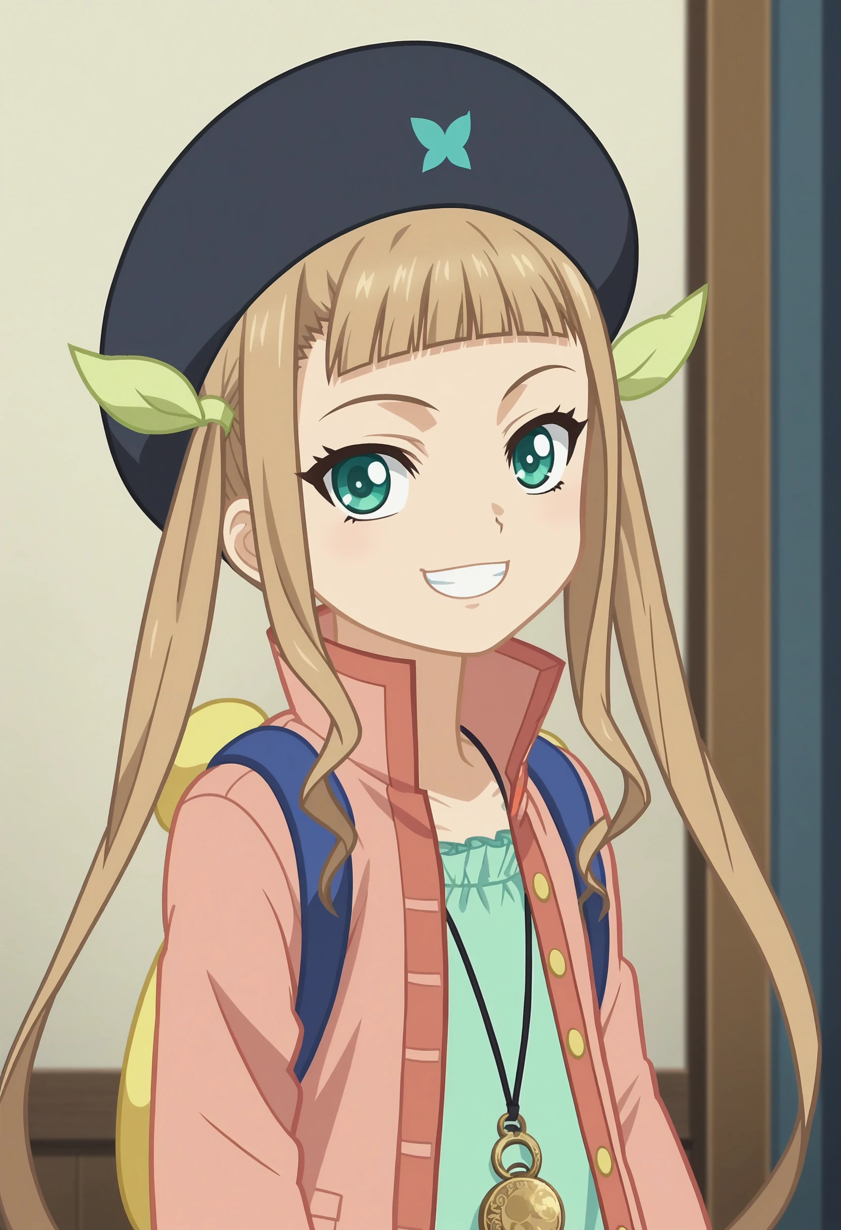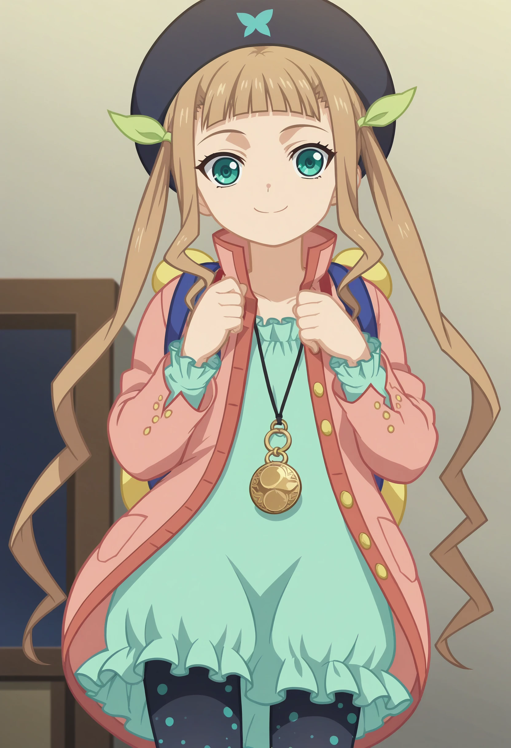 Default Outfit - coat, dress, necklace, beret, backpack, capri pants,mary janes,