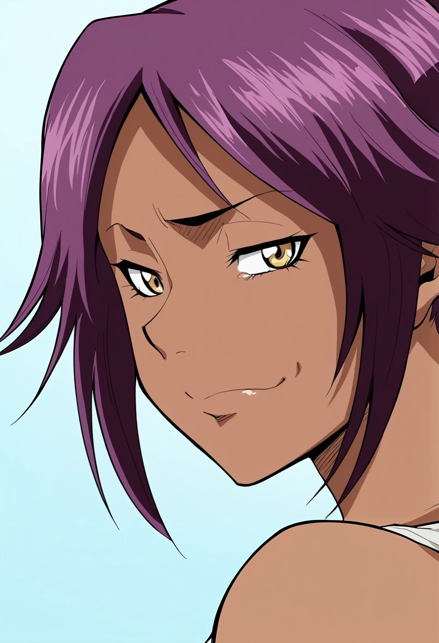 16.Natsuki,1girl,solo,mature female,dark-skinned female,black hair,short hair,black eyes,mole under eye,huge breasts,