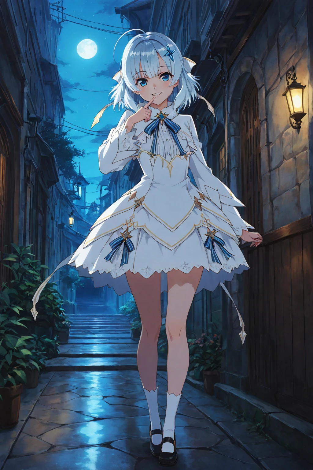 Main Garmentschool uniform, white dress, blue accentsA sophisticated, high-collared academy dress, usually white with gold or blue trim.