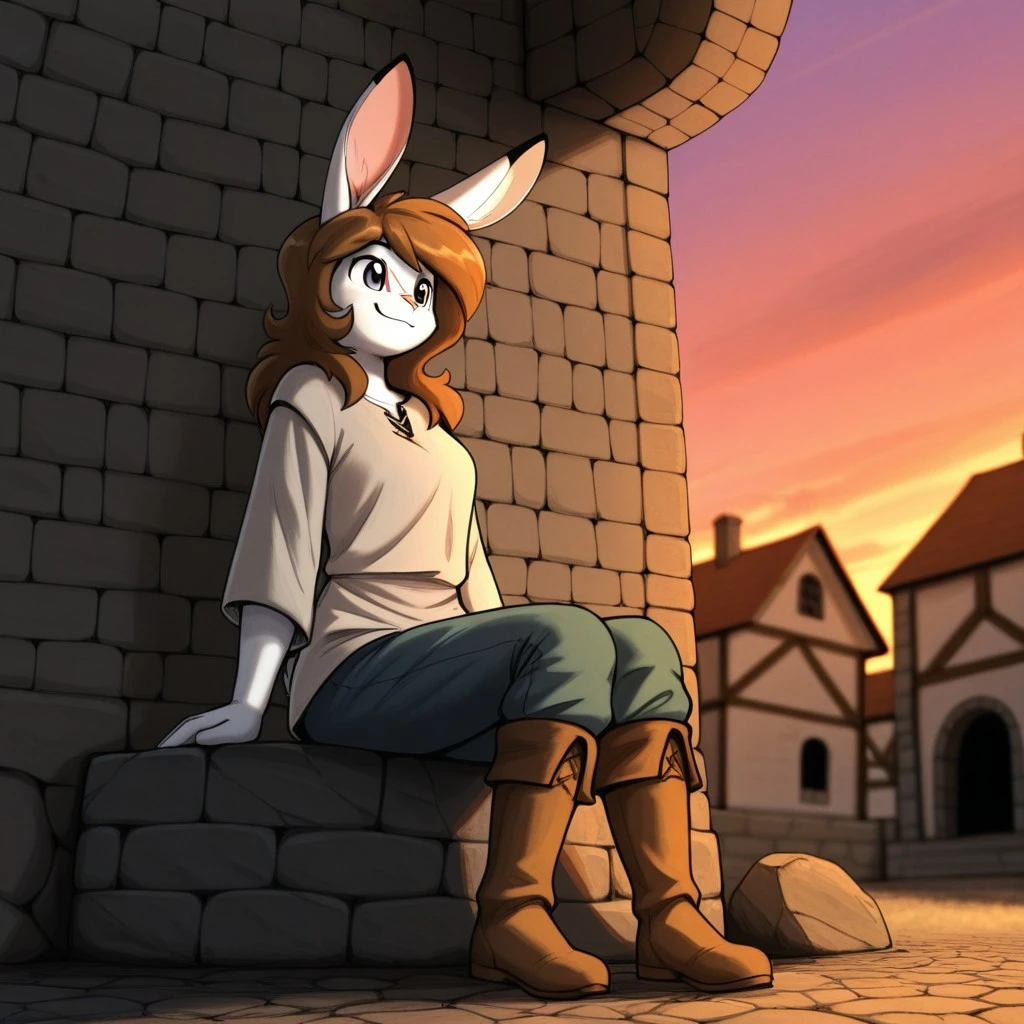 aleanora, rabbit, furry, female, brown hair, gauntlets, greaves, helmet, blue plume