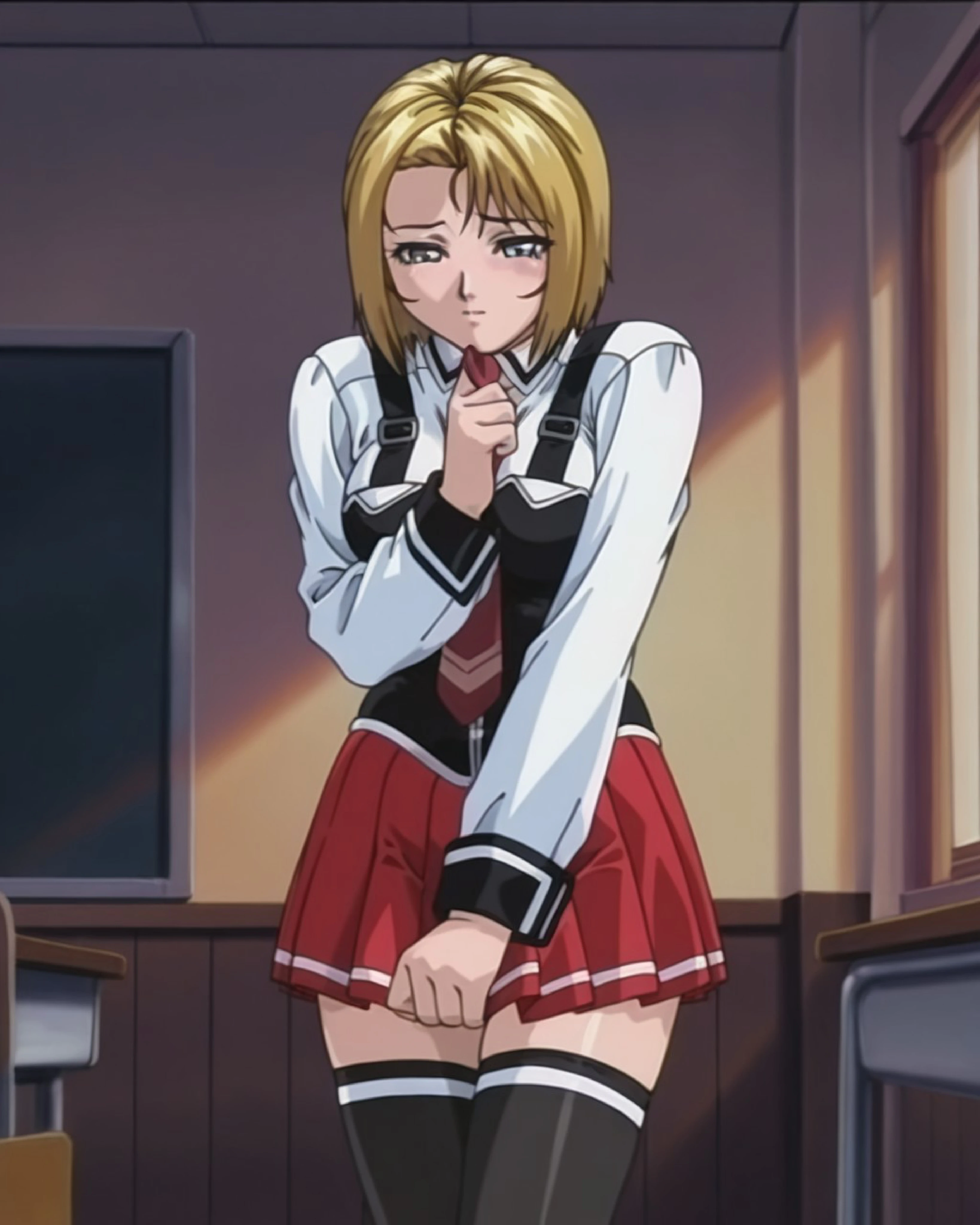 Reika Kitami, reika, blonde hair, bob cut, short hair, blue eyes, , 1girl, solo, full body, standing, dynamic pose
