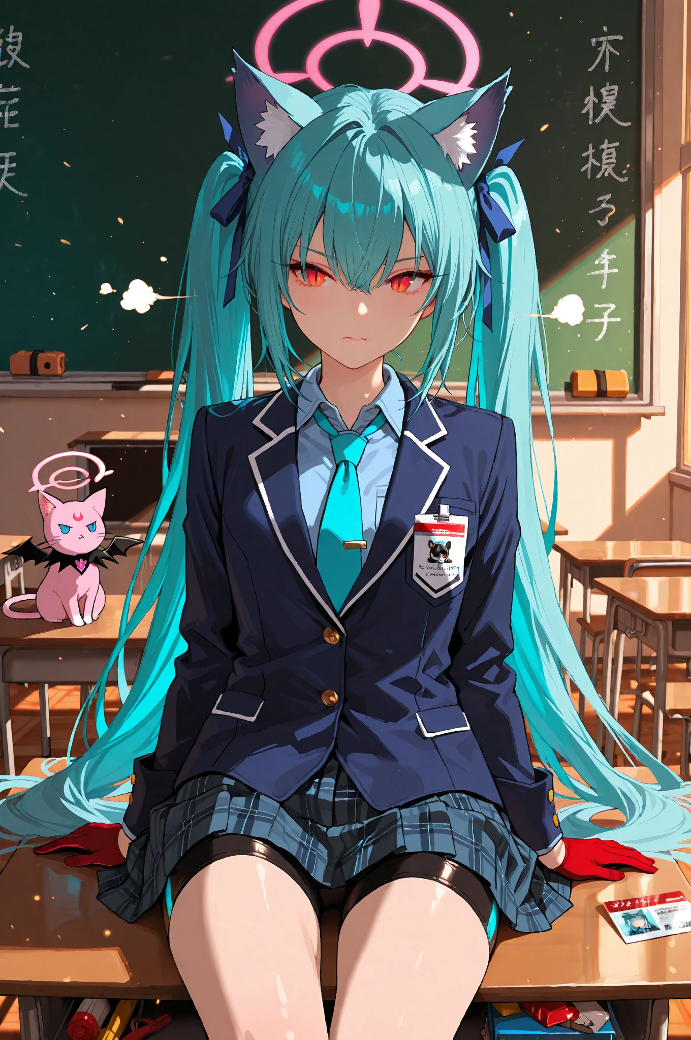 This Illustrious (IL) helper LoRA captures Kuromi Serika, the perpetually worried yet dedicated member of the Abydos High School Countermeasures Committee. This model is trained to generate her feline features, black twintails, and two distinct costume variations: her school uniform and a playful summer bikini.