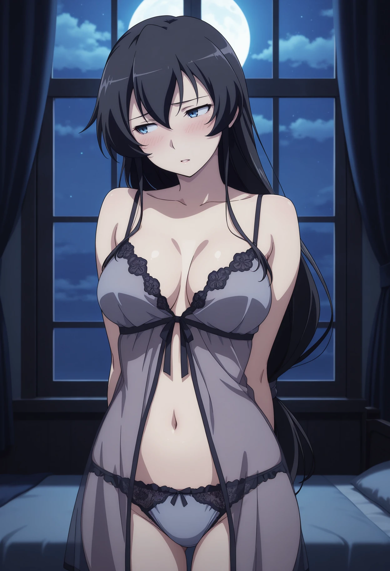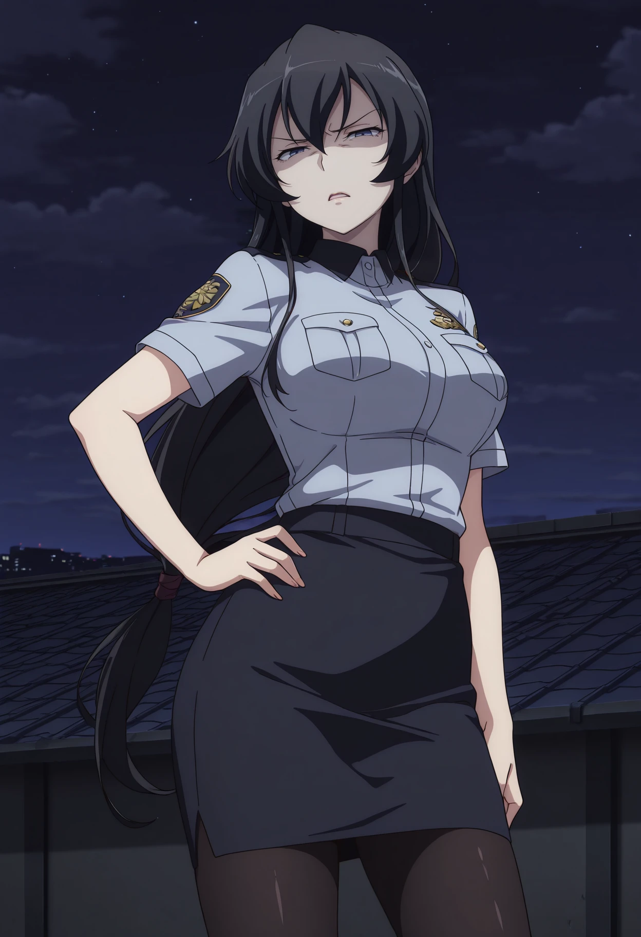 KJOyukihime, black hair, blue eyes, hair between eyes, low-tied long hair,