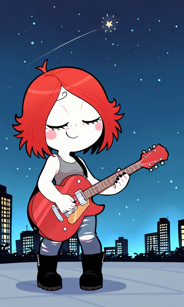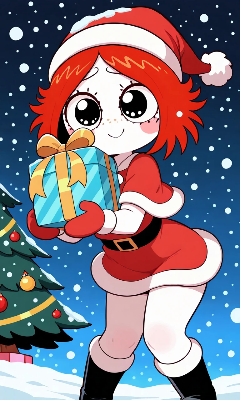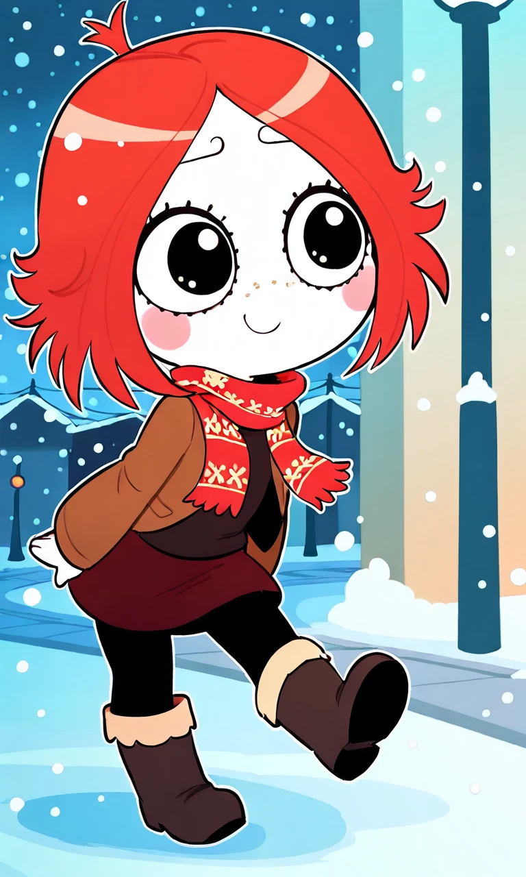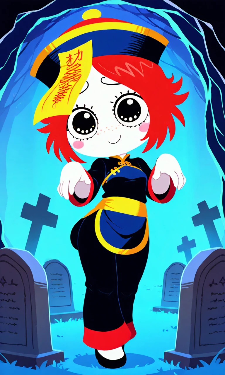 Base prompt: rubygloom_ruby, 1girl, solo, chibi, short hair, red hair, ahoge, eyelashes, black eyes, blush stickers, smile, freckles, white skin