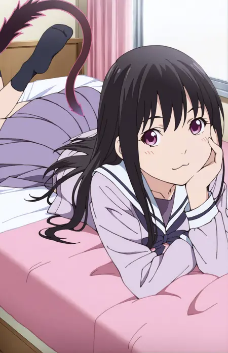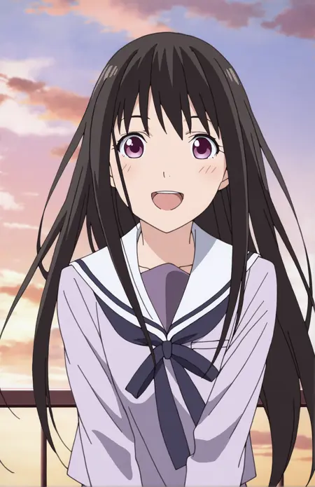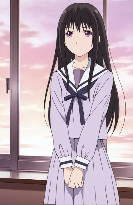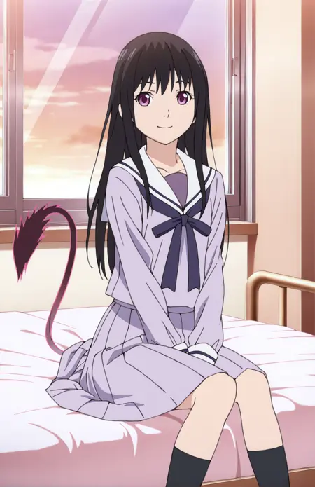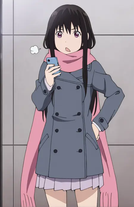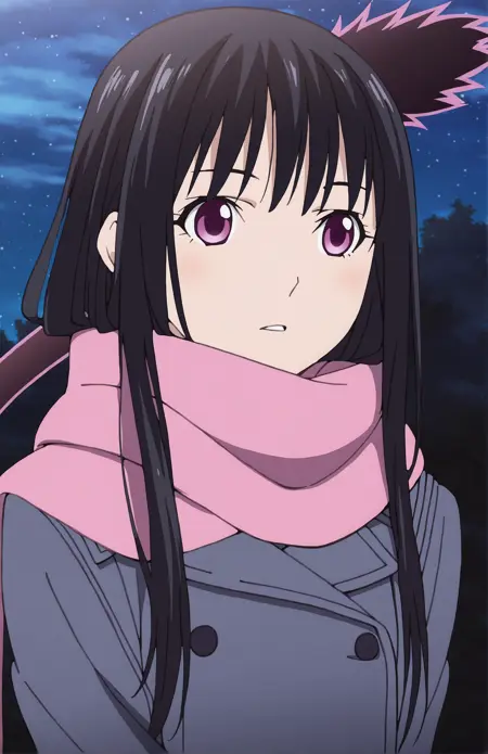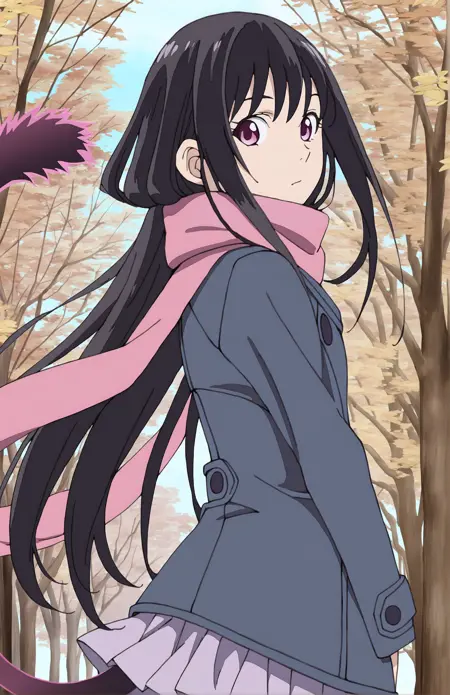 LORA for Iki Hiyori, from Noragami by Adachitoka. Recommended weight: 0.9. Trigger word: IkiHiyori. Prompt for school outfit: school uniform, serafuku, shirt, pleated skirt, black socks. Prompt for streetwear: coat, plated skirt, scarf, pink scarf, black socks. Casual outfit: coat, pleated skirt, scarf, pink scarf. Prompt for tail: tail, phantom tail.