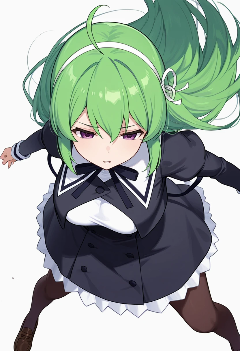 Tanaka Ichi (η°δΈε£±) is a Lily from the Yurigaoka Girls' Academy. She is characterized by her long green hair, purple eyes, and a uniform that features a unique cropped jacket and bow hairband, sharing some uniform elements with Yoshimura Thi Mai.