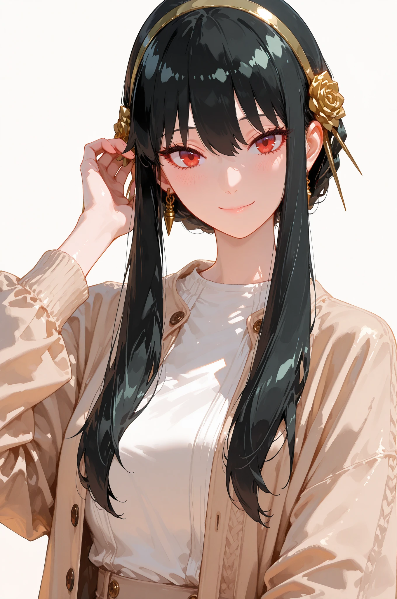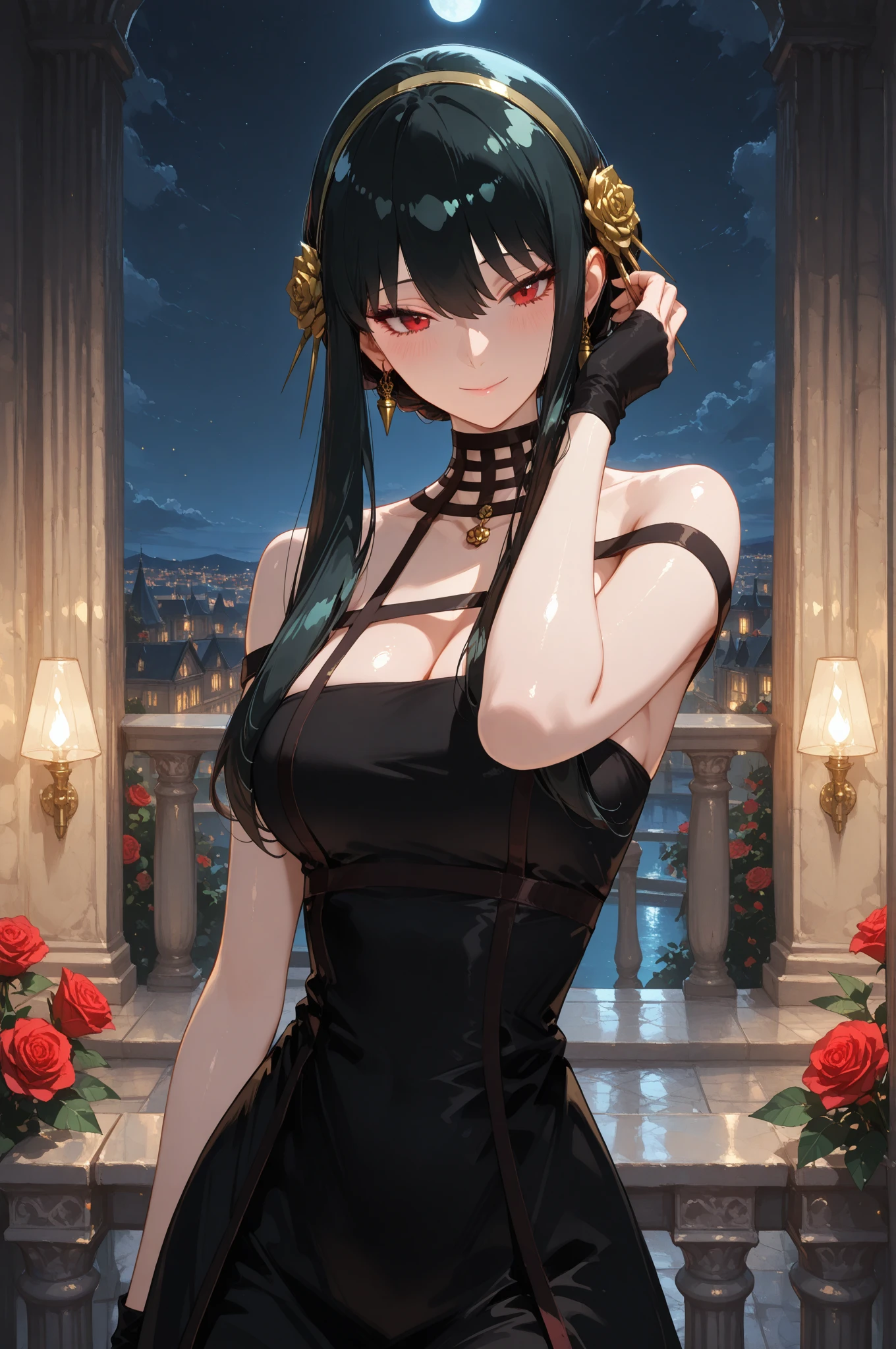 yor briar, long_hair, bangs, black_hair, sidelocks, red_eyes
