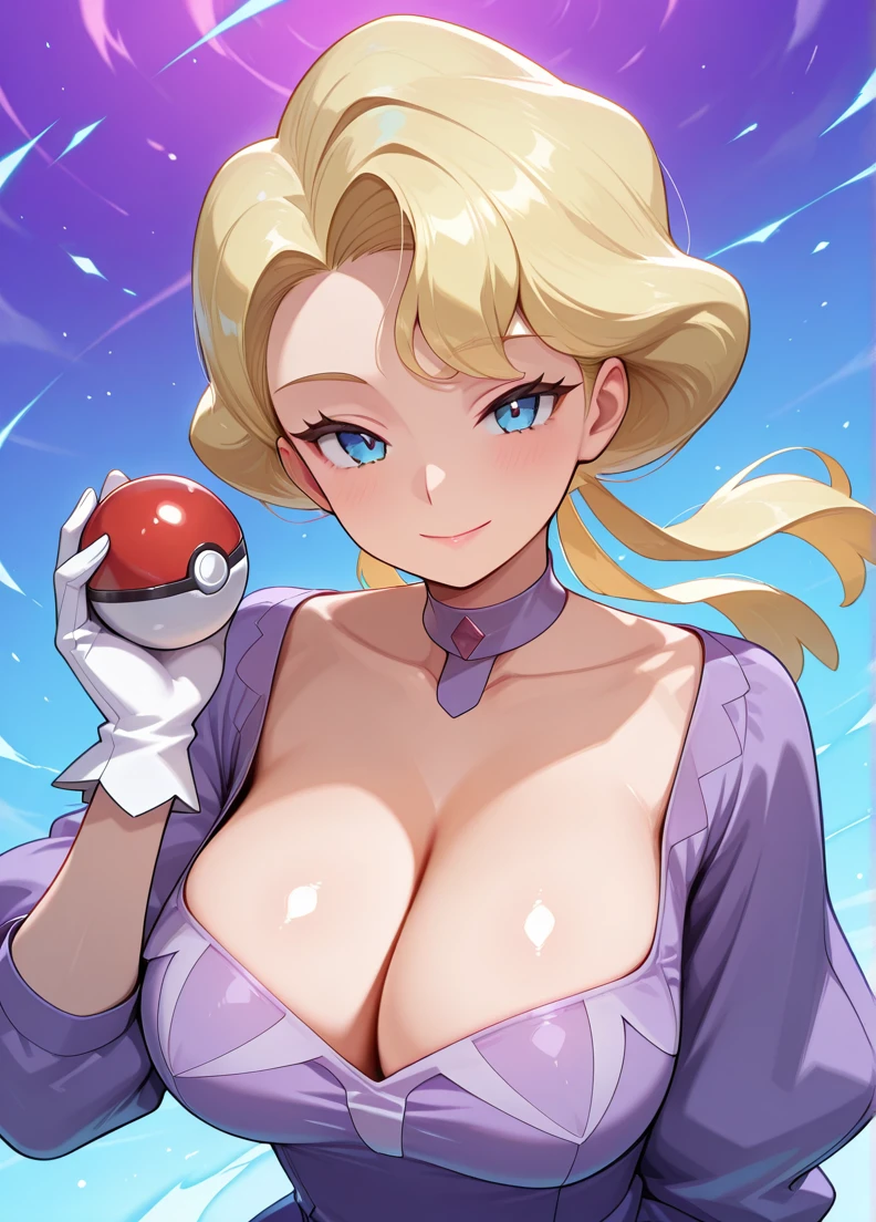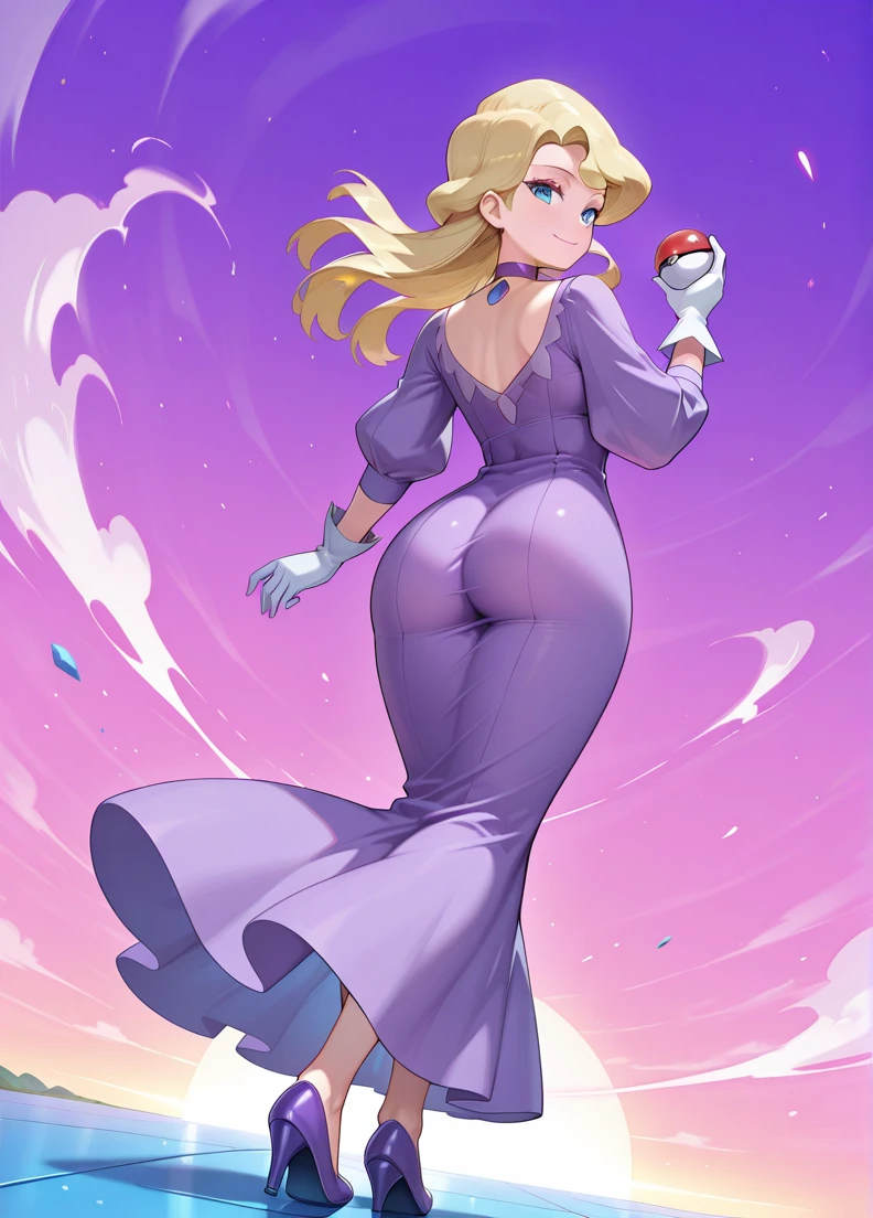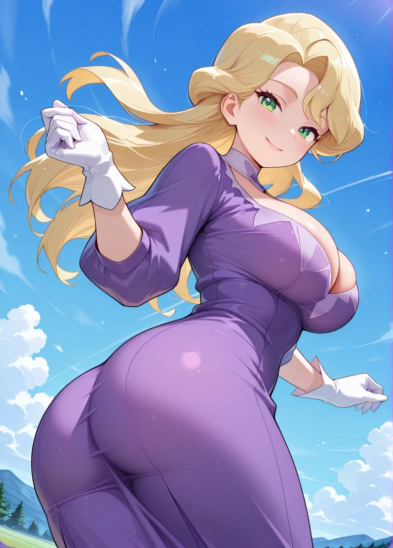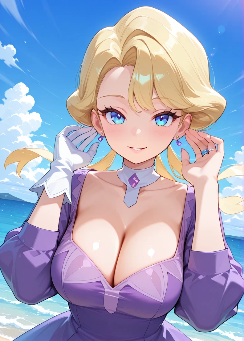 purple dress, choker, White gloves, puffy sleeves, long sleeves,