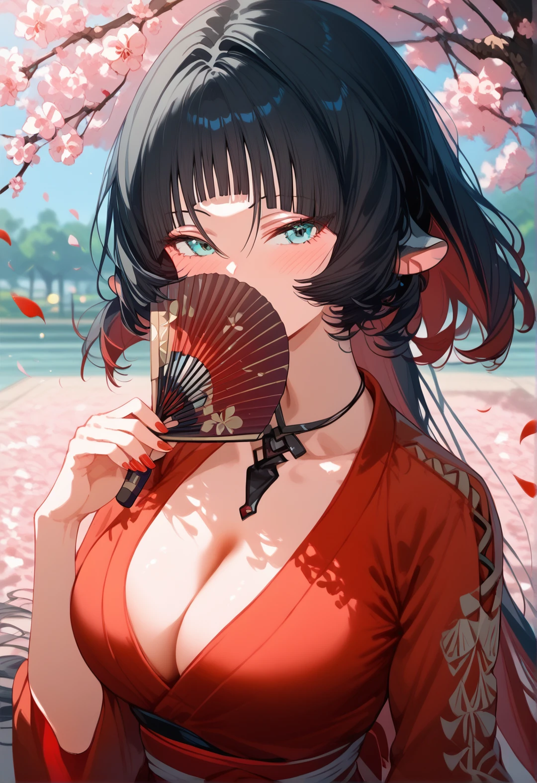 zzzjd, jane doe (zenless zone zero), 1girl, solo, black hair, red hair, pointy ears, aqua eyes, multicolored hair, long hair, tail, two-tone hair