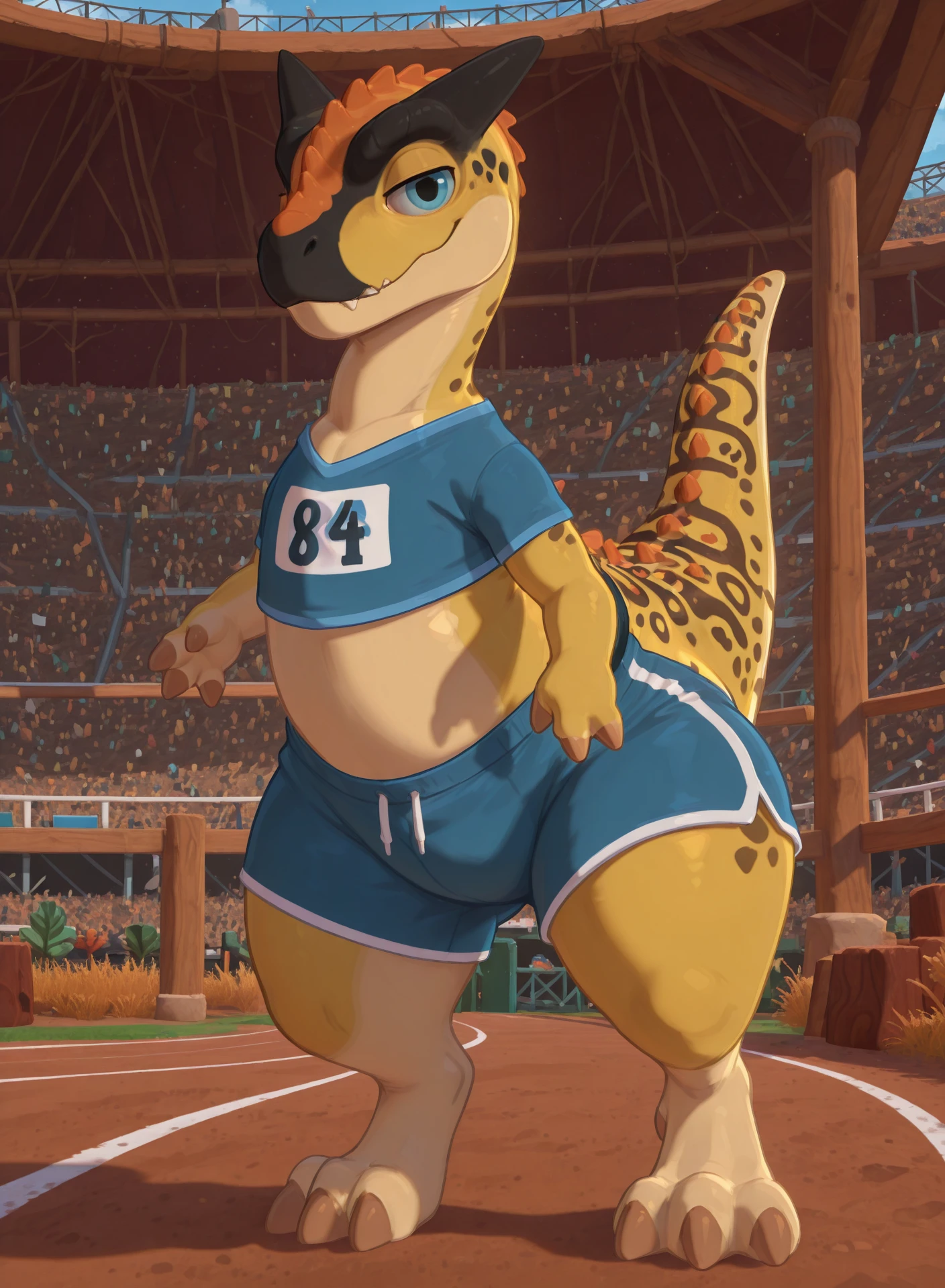 Chip the Carnotaurus doesn’t have time to waste! Yeah, he could patter about like everyone else, but for him it’s fun to push his boundaries and go harder, better, faster and stronger than he did before. Being in top shape is important for him as an athlete, and Chip has dreams of becoming the world’s fastest Paleofolk across all track and field disciplines. The only problem being, poor Chip is great on the straight and narrow, but totally unable to keep his acceleration as he turns a corner! Having bested his peers in the 100m dash, Chip realises that in order for him to go beyond his current limitations and win both the relay and the 800m run, he’s going to need to design a super secret training regime just for him, but needs to be away from prying eyes so that his techniques don’t get stolen by his competitors. The only problem is, where does he begin? When Chip arrives at Amber Isle seeking to start his own private training camp, he finds a pseudo-mentor in the ever secretive Bosco Dunepaw...