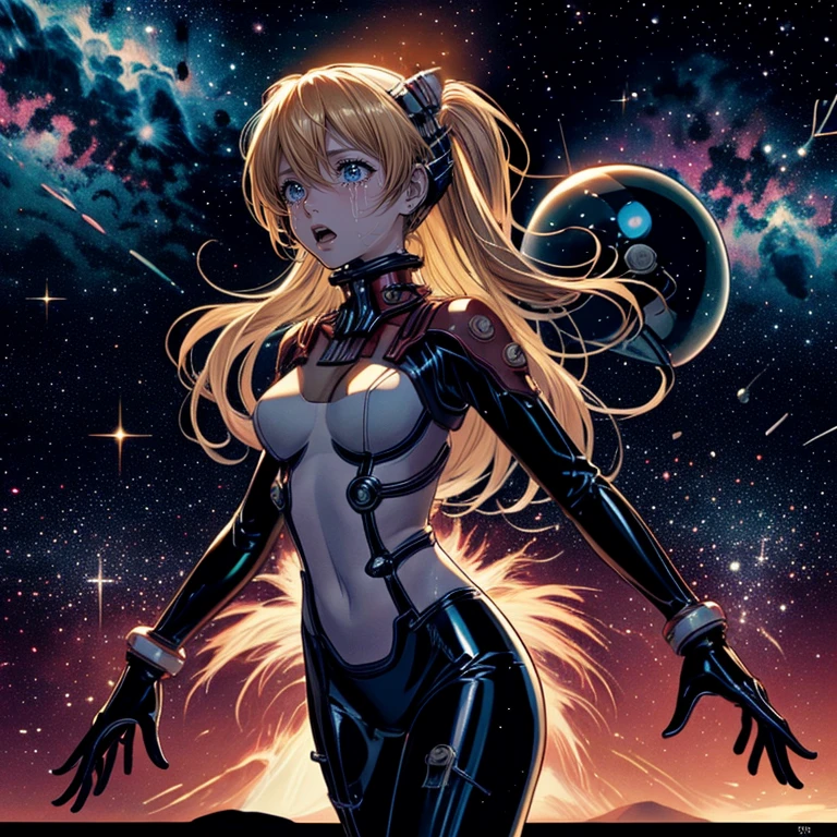 The results are as follows: The long hair appears to float in space, despite the environment. In the case of the bodysuit, it seems that Lora's design takes precedence. Therefore, if you want to match this bodysuit, please remove the clothing prompt from the character Lora. As for the cat ears, they appear not inside the helmet but as part of a cat-eared helmet.