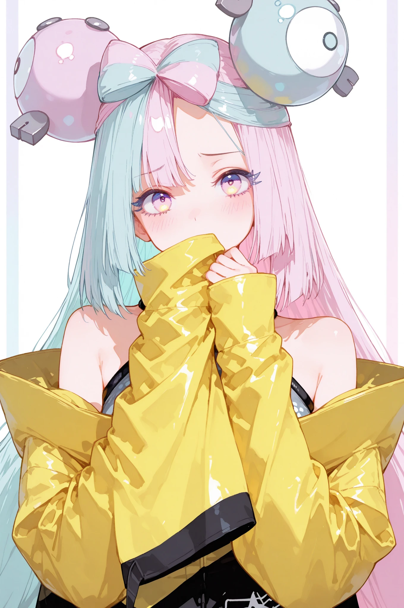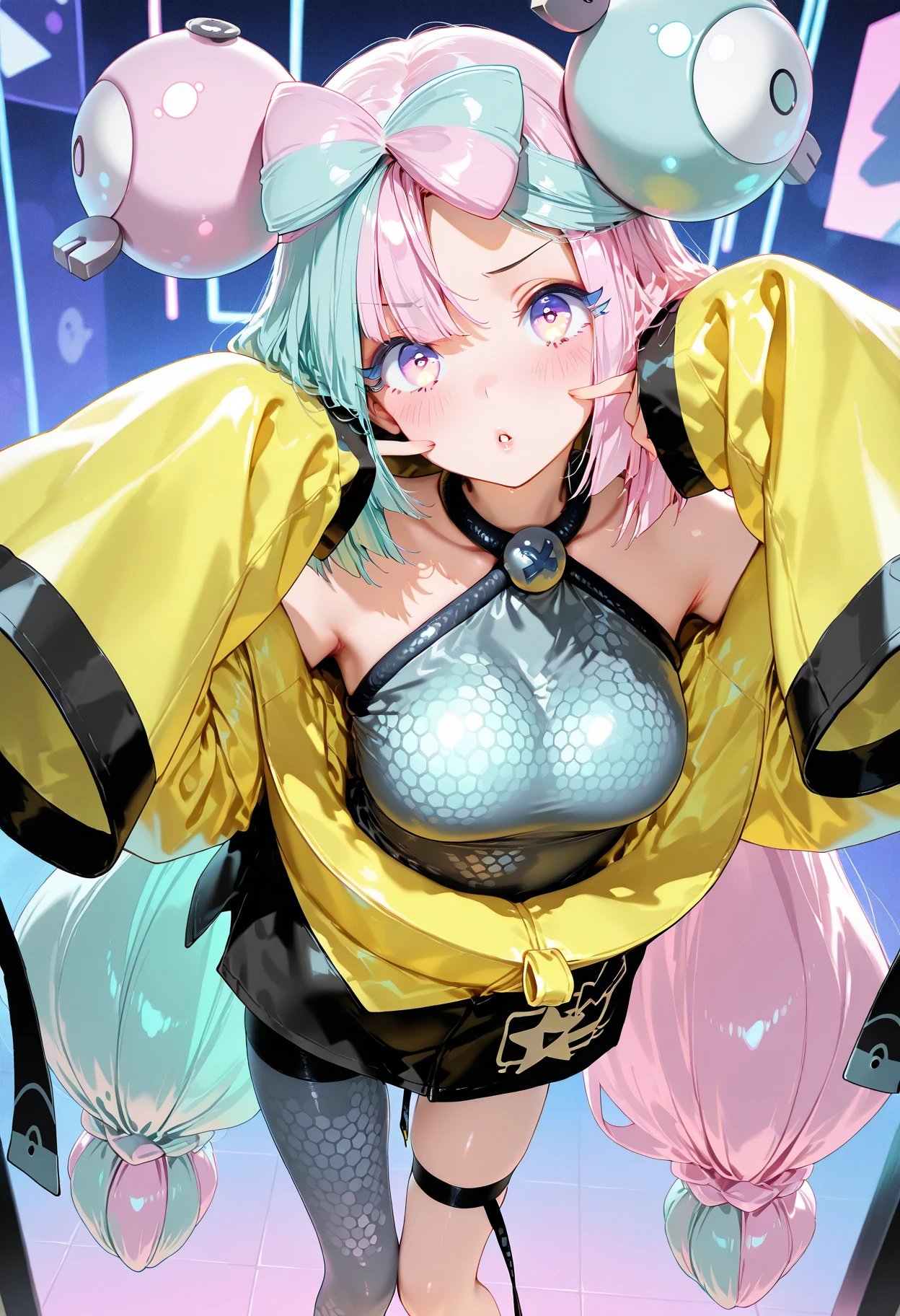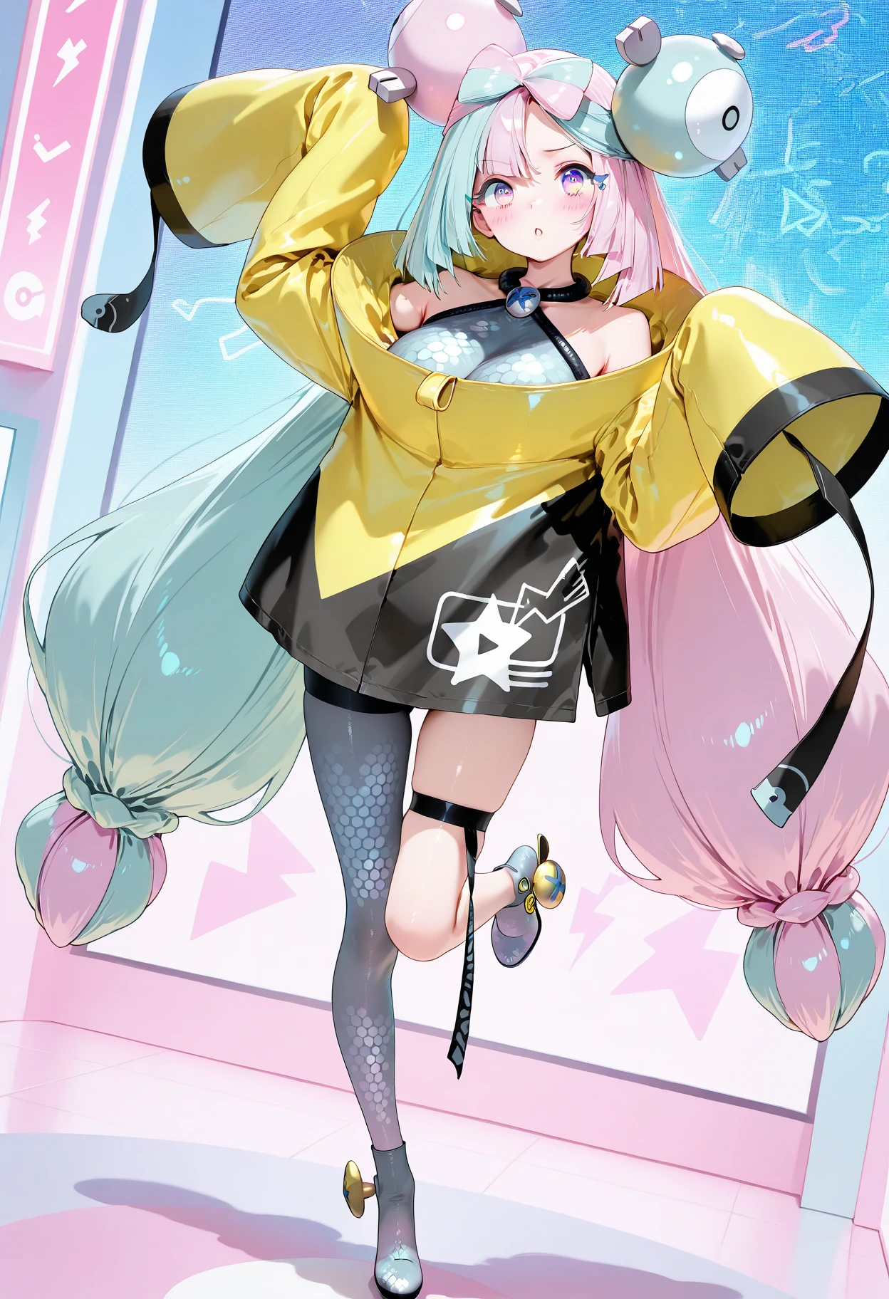 iono, long_hair, multicolored_hair, split-color_hair, bangs, blue_hair, pink_hair, bow-shaped_hair, pink_eyes