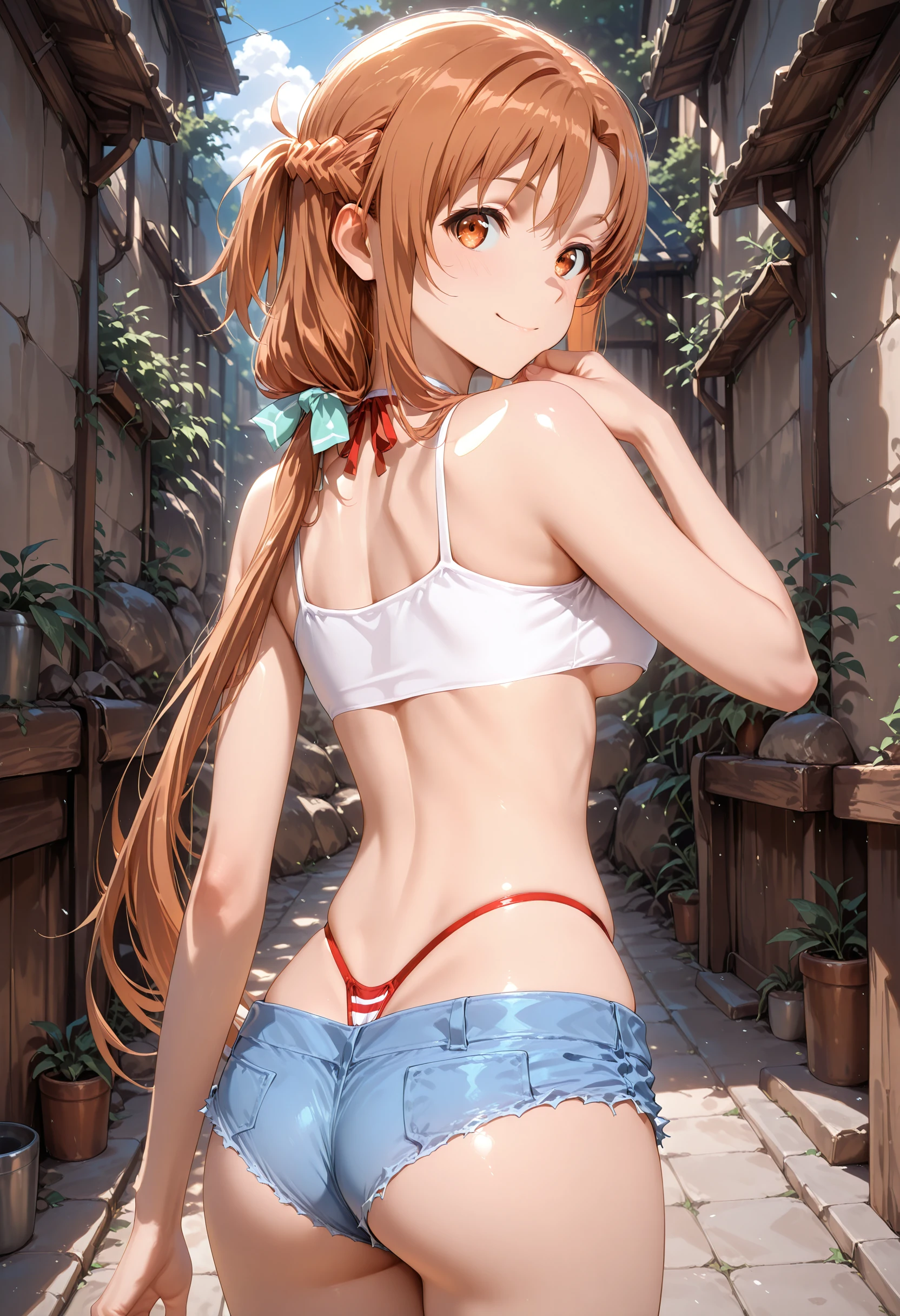 <lora:stripe__2:0.9>strtipe_, highleg, denim shorts, shoulders, ,,, underboob,highleg,,horizontal stripes,cutoffs, white crop top, micro shorts,