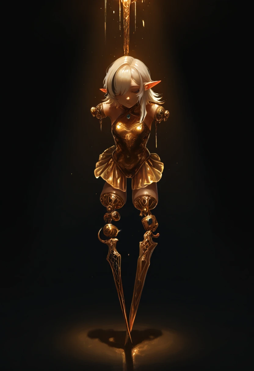 gold knobs in place of amputated legs, gold jewelry in place of amputated arms