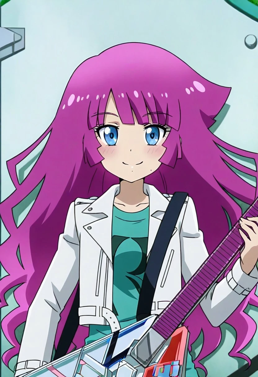 Prompt character: 1girl, solo, Rominrock, blue eyes, purple hair, pink hair, long hair, bangs,