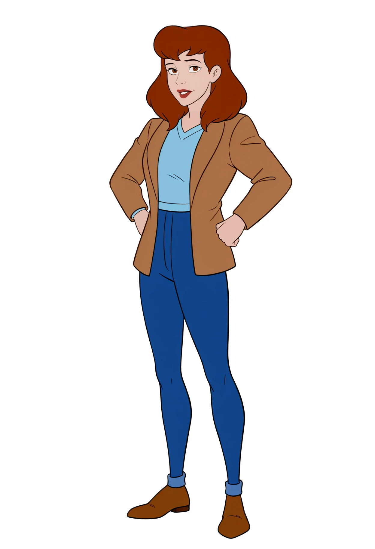 Outfit prompts : brown jacket, blue shirt, blue pants, brown shoes