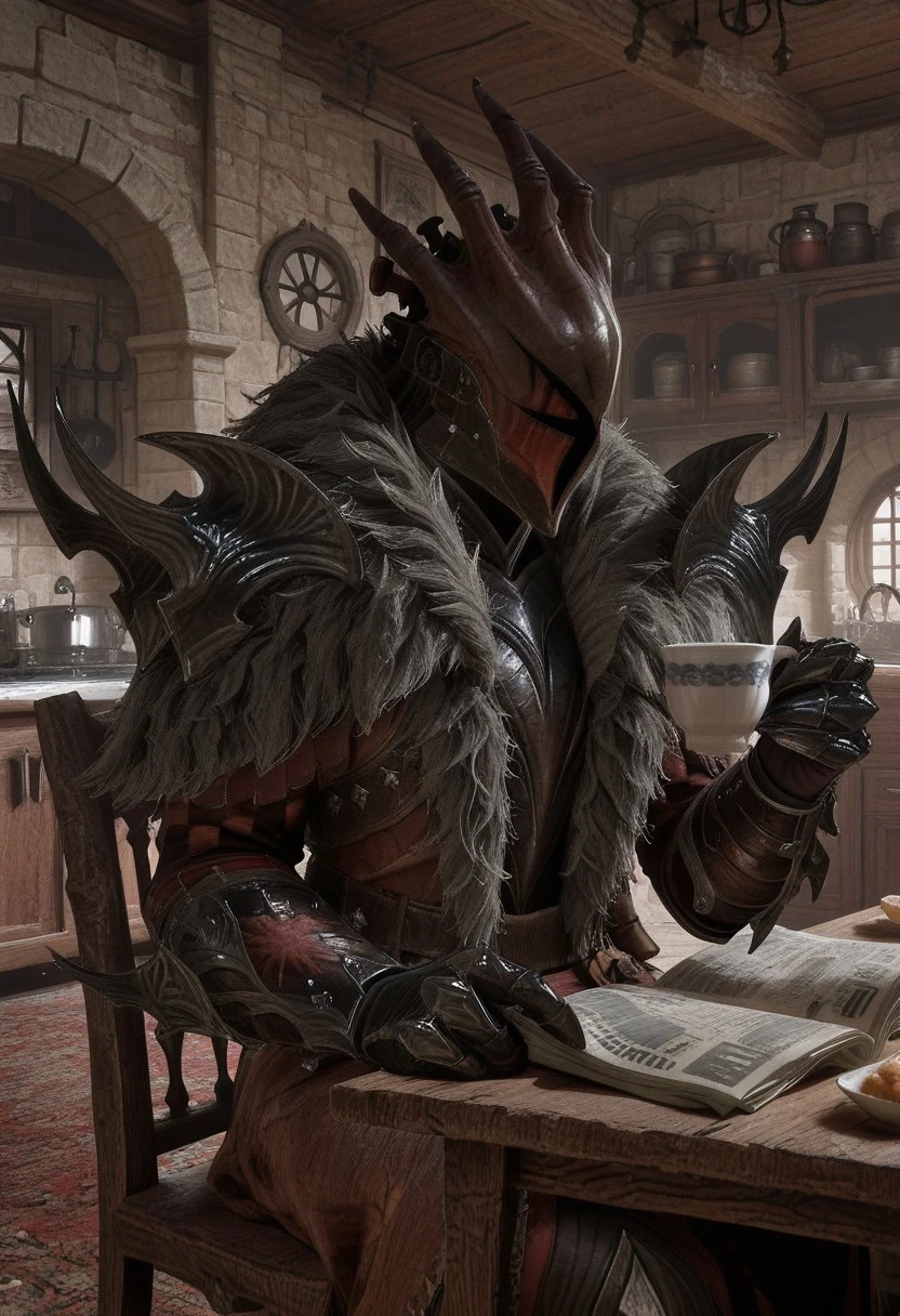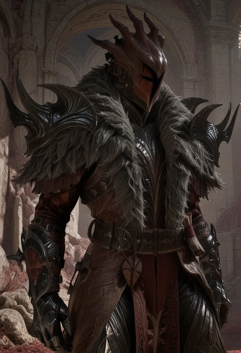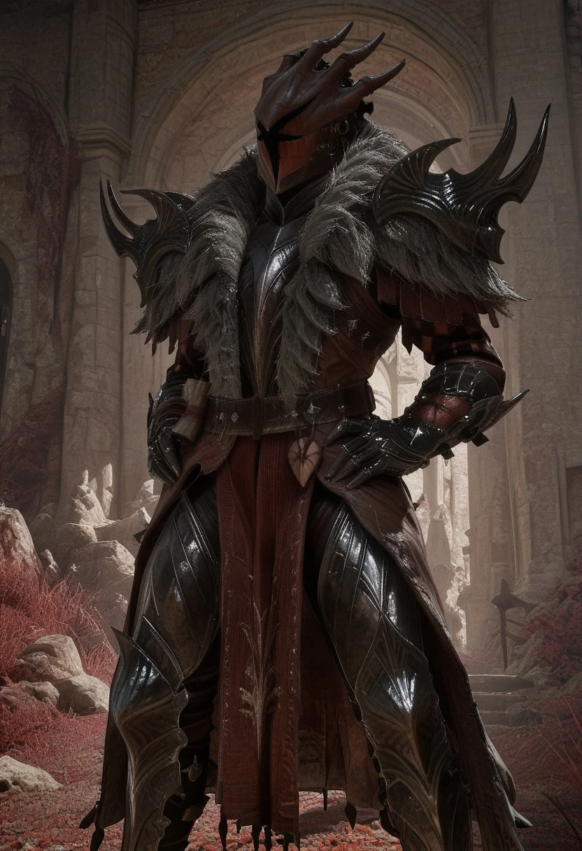 Prompts: Gen.EngstromSDXL, helmet, coat, open coat, fur trim, shoulder armor, gauntlets, greaves, boots