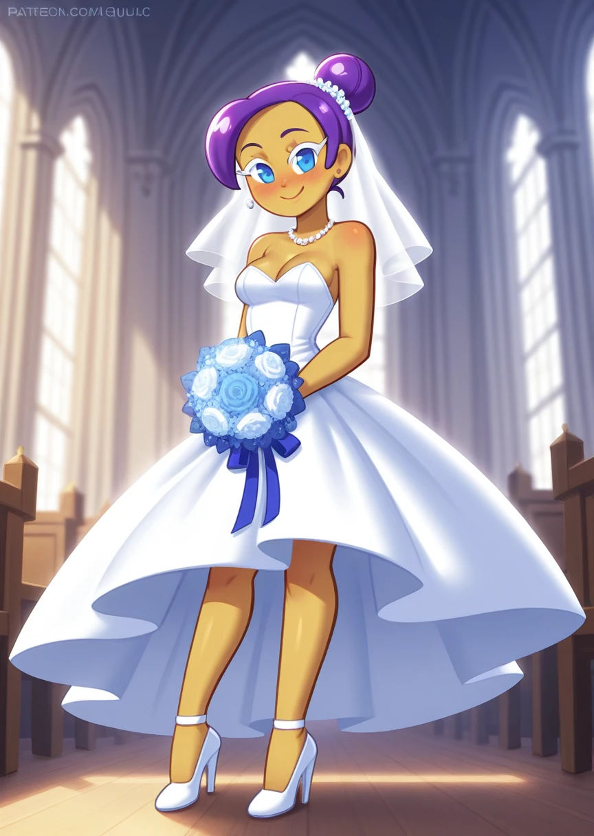 promtps: skquco, chibi, blue dress, purple hair, blue eyes, colored eyelashes, staff, candy ice skates,