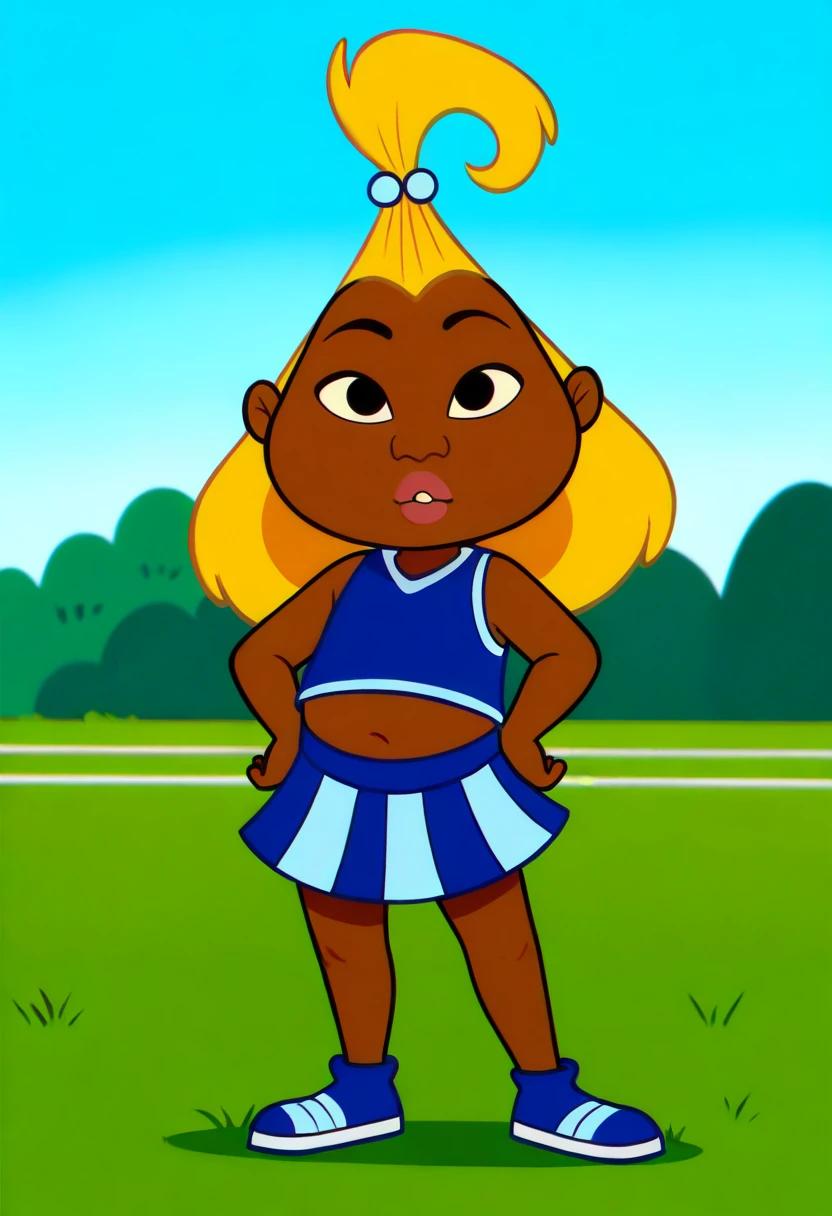 Cheerleader prompts : cheerleader, blue skirt, navel, blue shirt, sleeveless