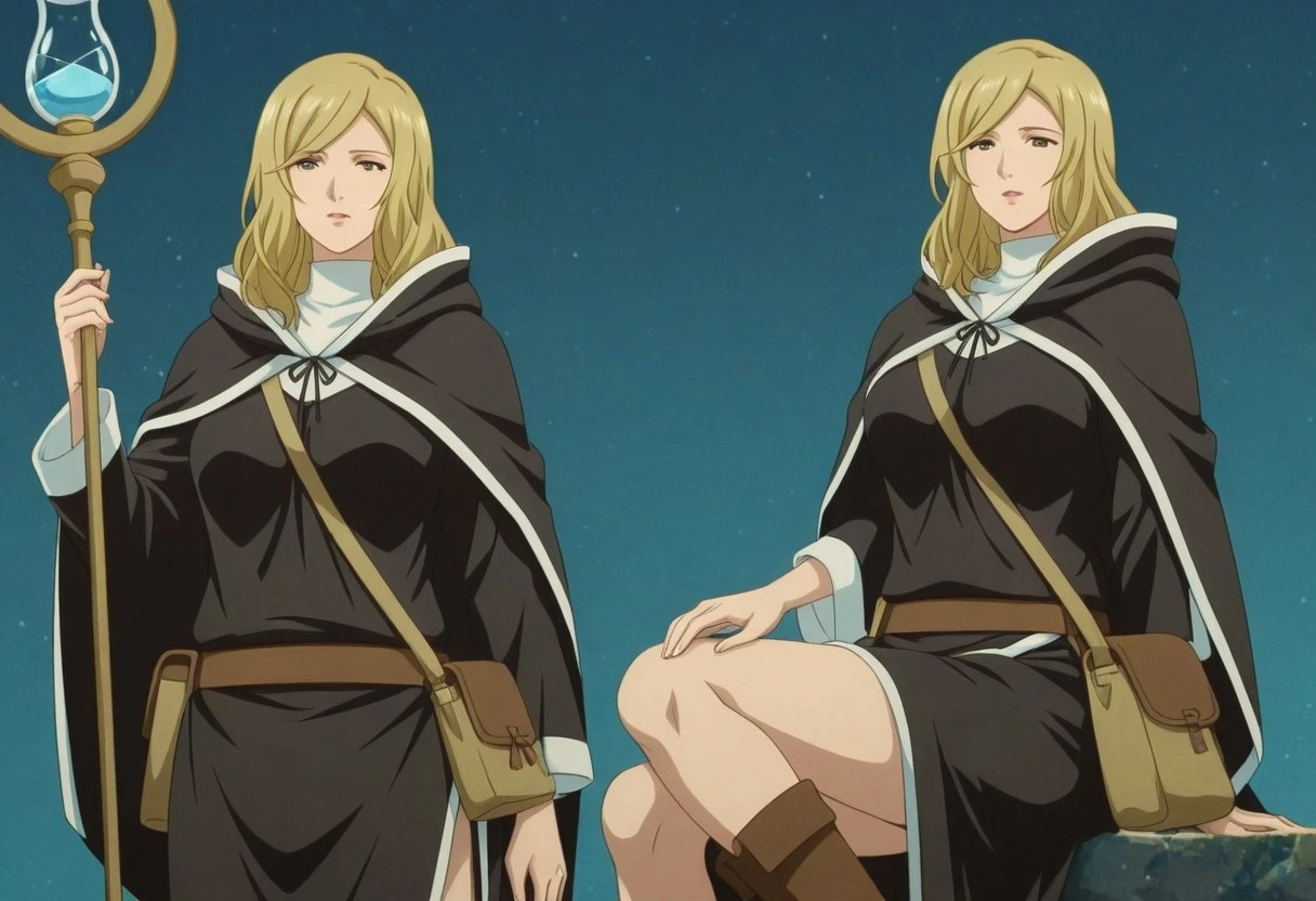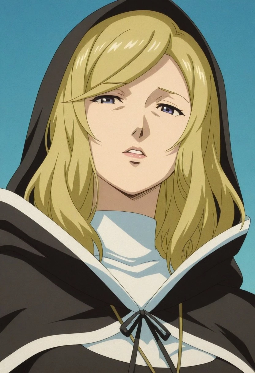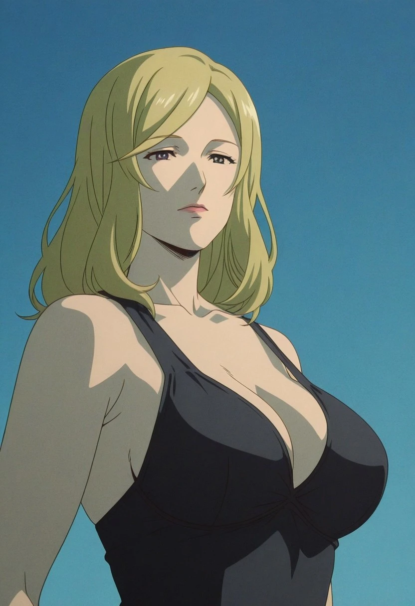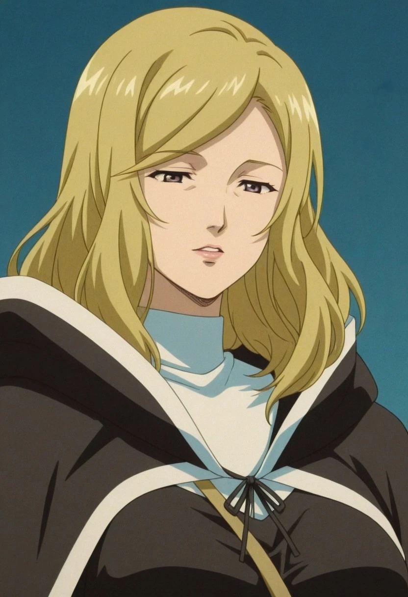 franca, solo, (elegant confident mature female, age 28 to 33, graceful and feminine gaze, mature female, realistic anime adult face, realistic mature female figure, strong hourglass shape, slim voluptuous, plush body), fair skin, shoulder-length blonde hair, gentle violet eyes, pink lipgloss, elegant and well-proportioned, anime screencap, (anime style:1.4), very aesthetic, realistic body proportion, ultra-detailed, mappa studio, realistic body proportion, ultra-detailed,