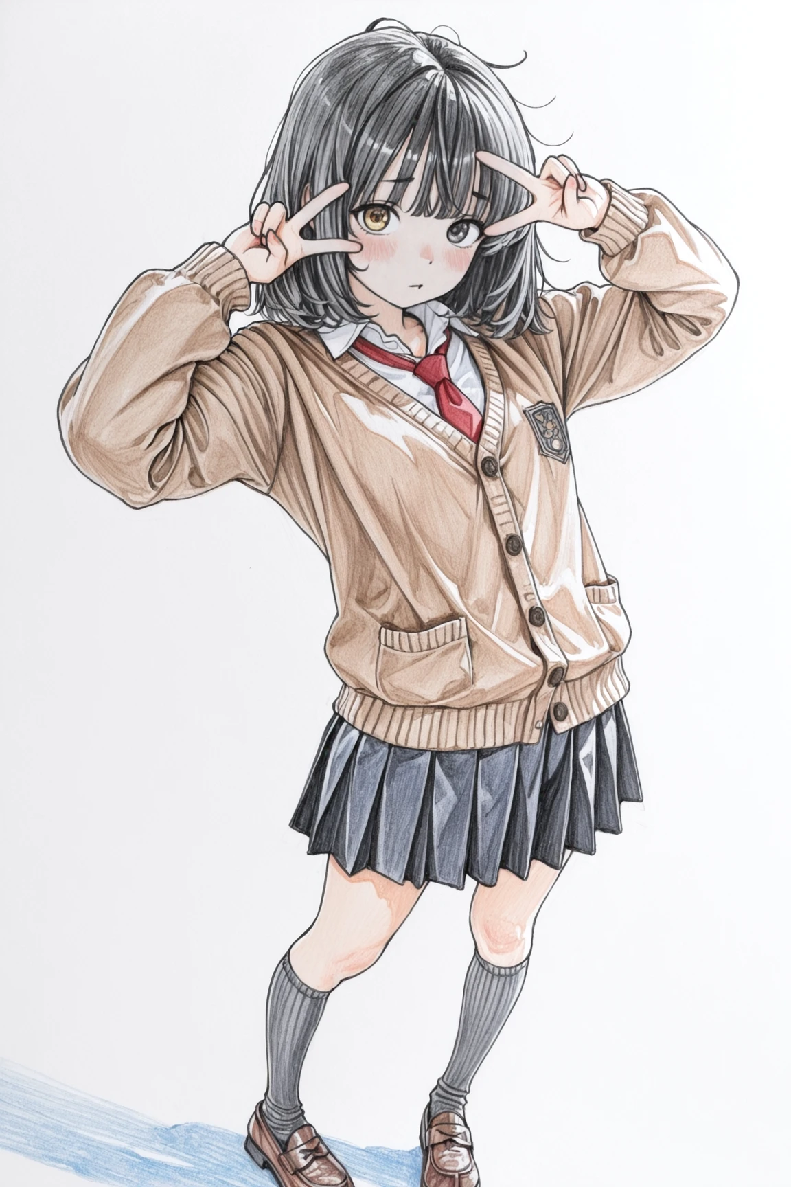 Helpful tags: masterpiece, best quality, traditional media, flat color, (jaggy lines, graphite \(medium\), colored pencil \(medium\), pastel \(medium\):1.5),