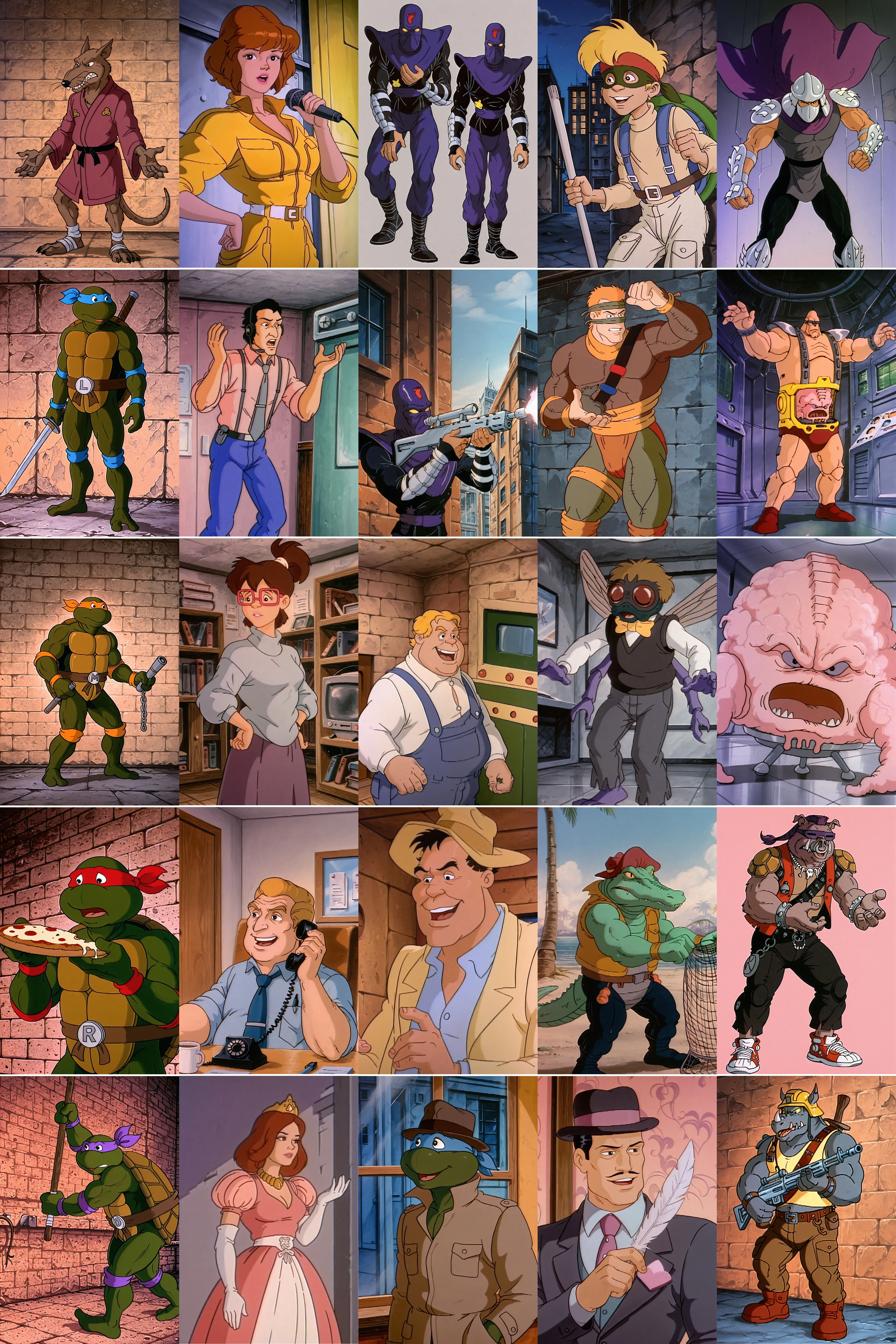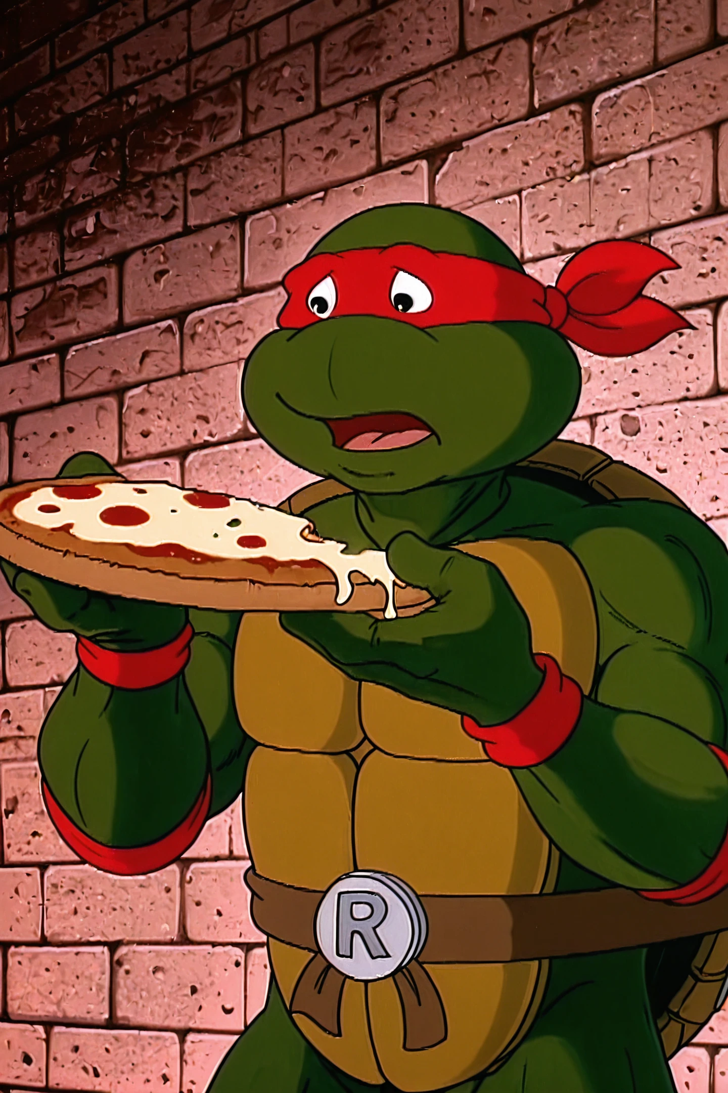 1. 使用提示词:TMNT1987 Style 可以获得 1987版《忍者神龟》动画 的风格。