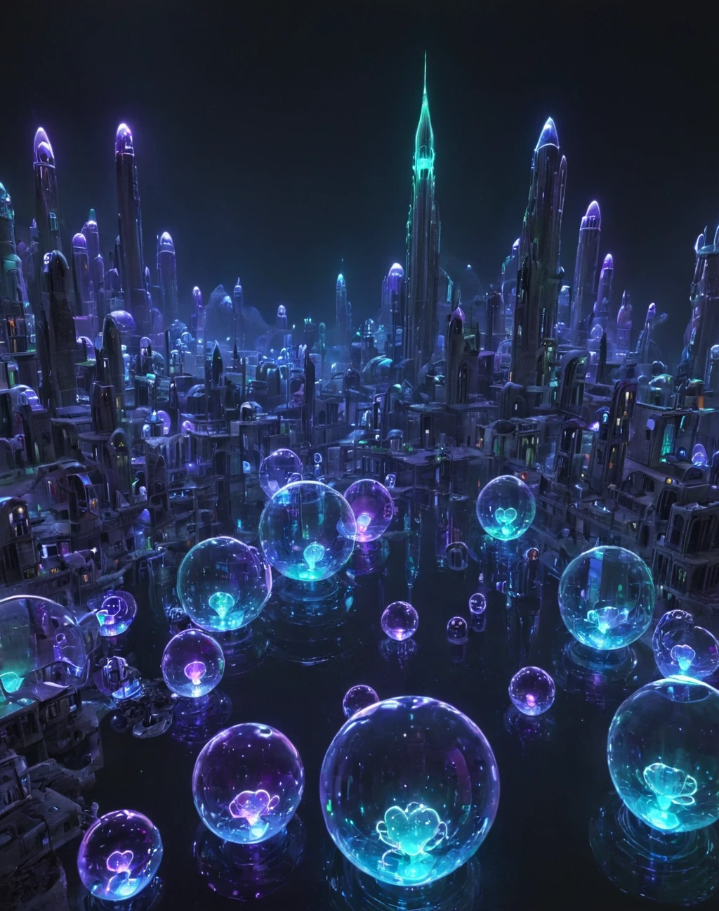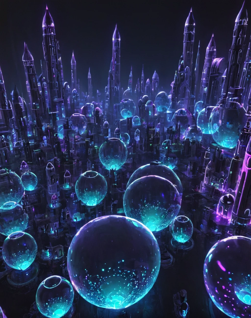 This model was trained to create figures out of glowing bubbles. It works better with very light prompts.