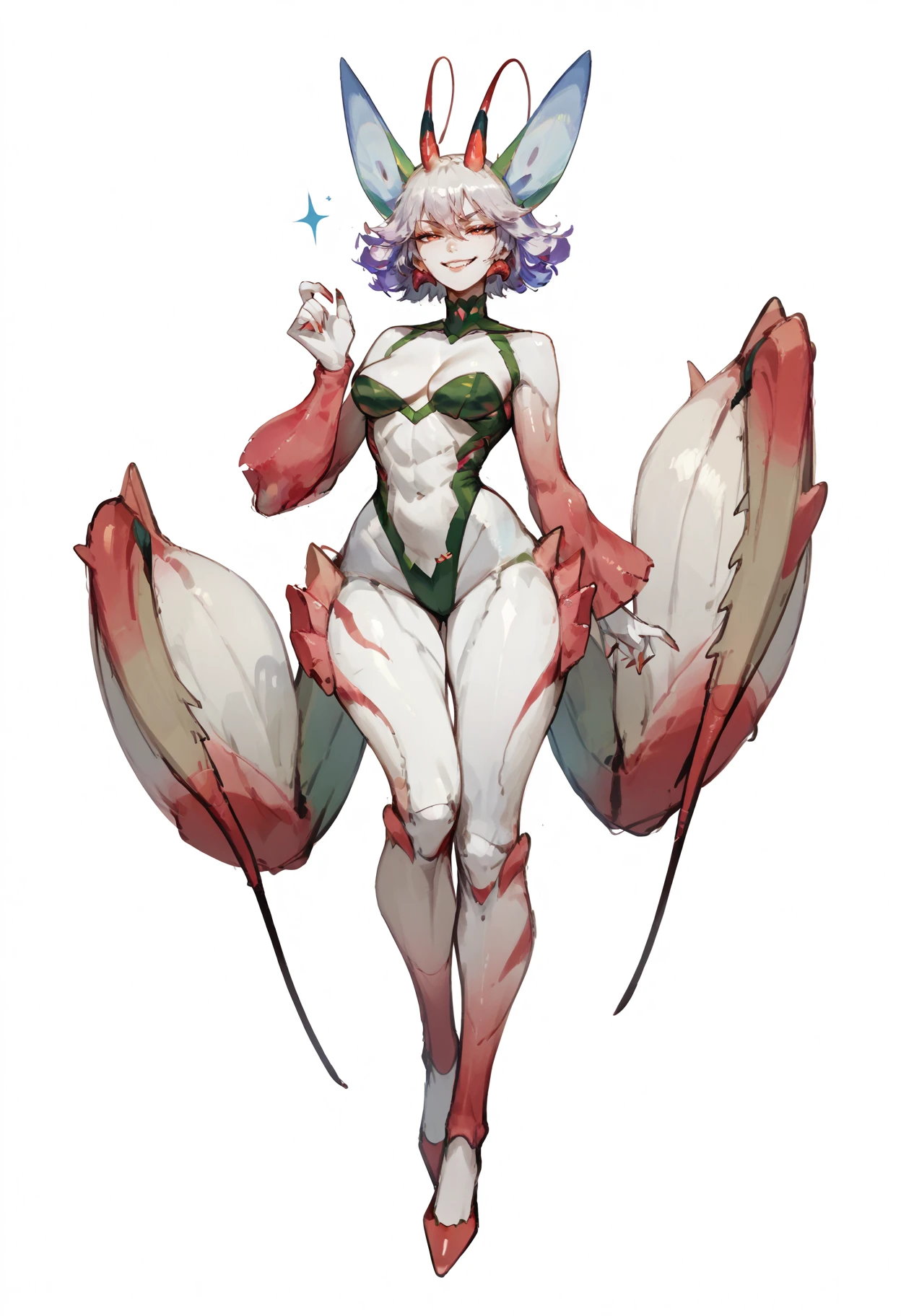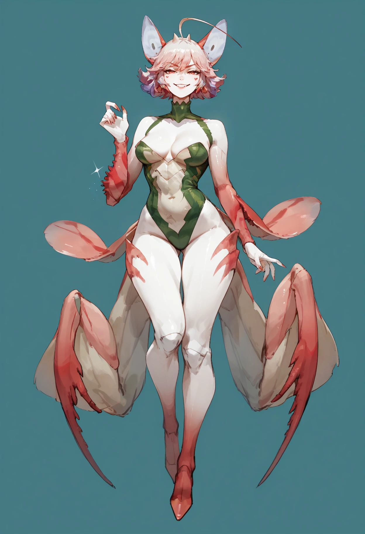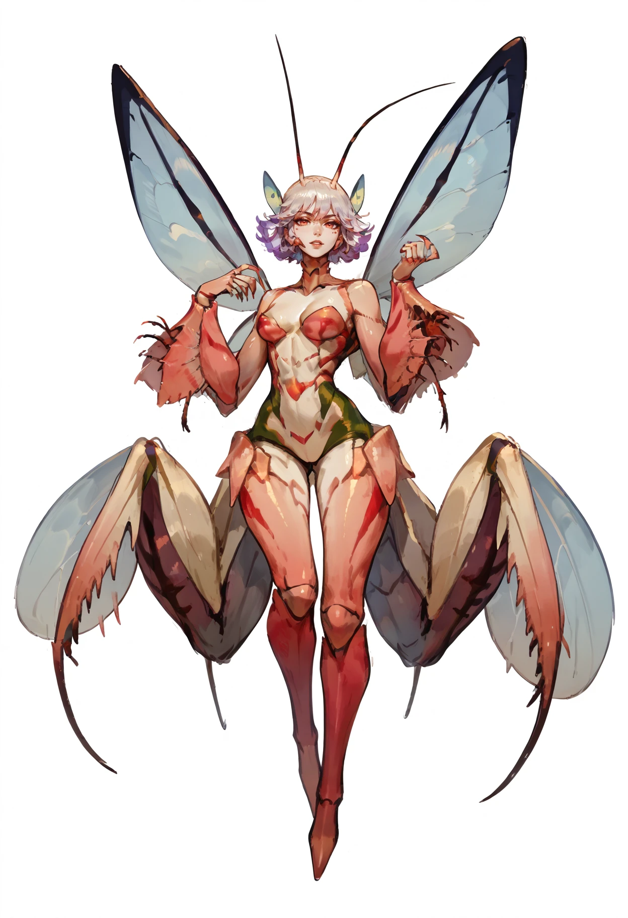 Additional trigger words, use these to make the character more mantis like and less humanoid like: orchid mantis, insect arms, arthropod limbs,