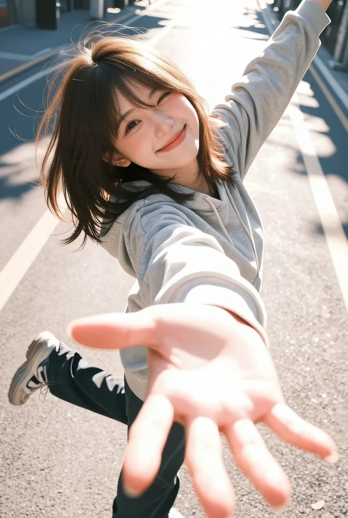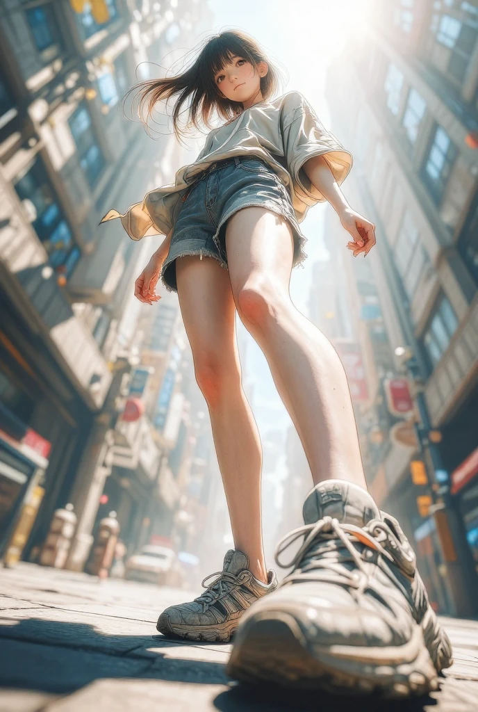 カメラ方向に向いた手や足などの前景要素を自然に大きく見せる遠近効果を強めつつ、人体の破綻をできるだけ抑えた自然なパース表現を目指しています。