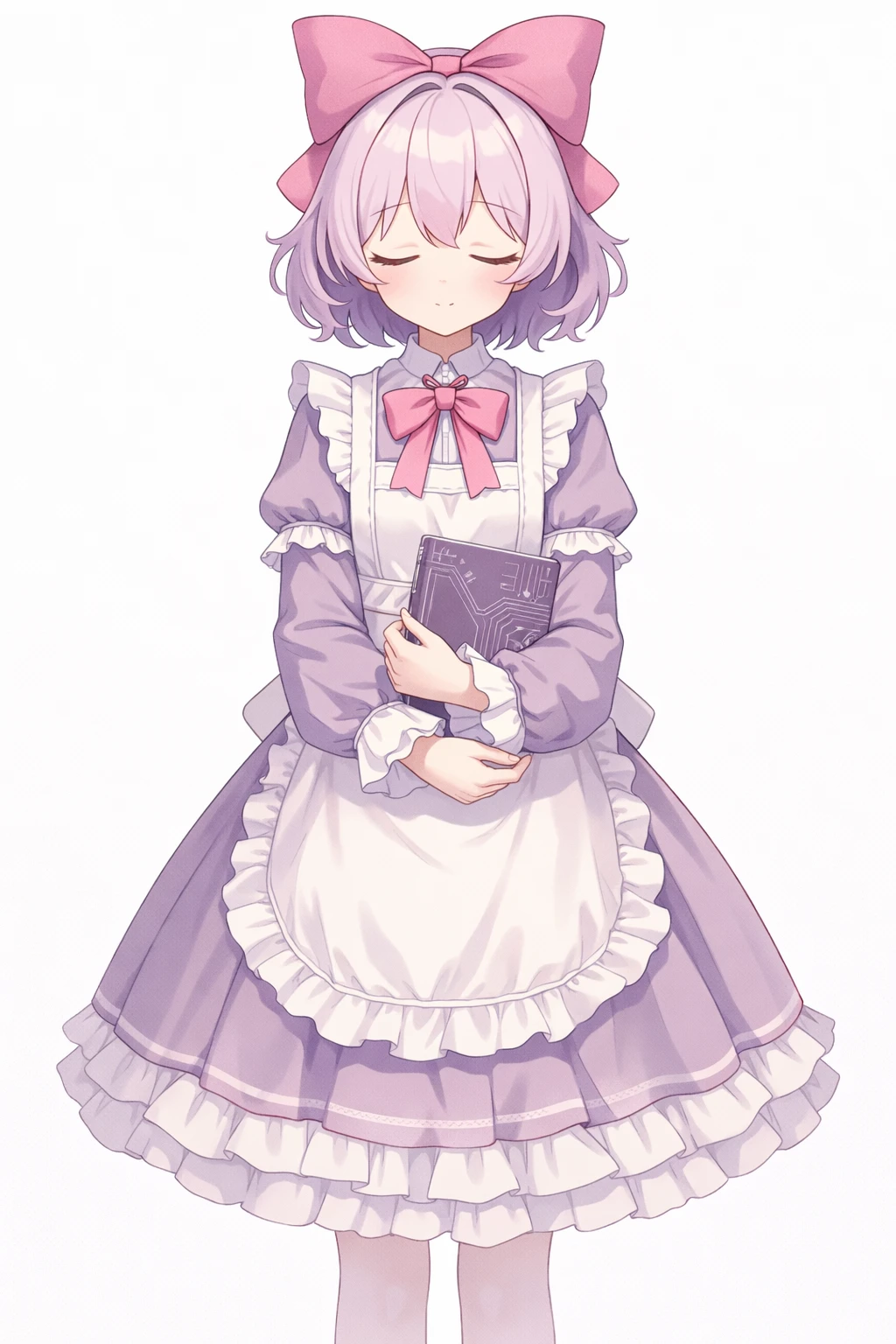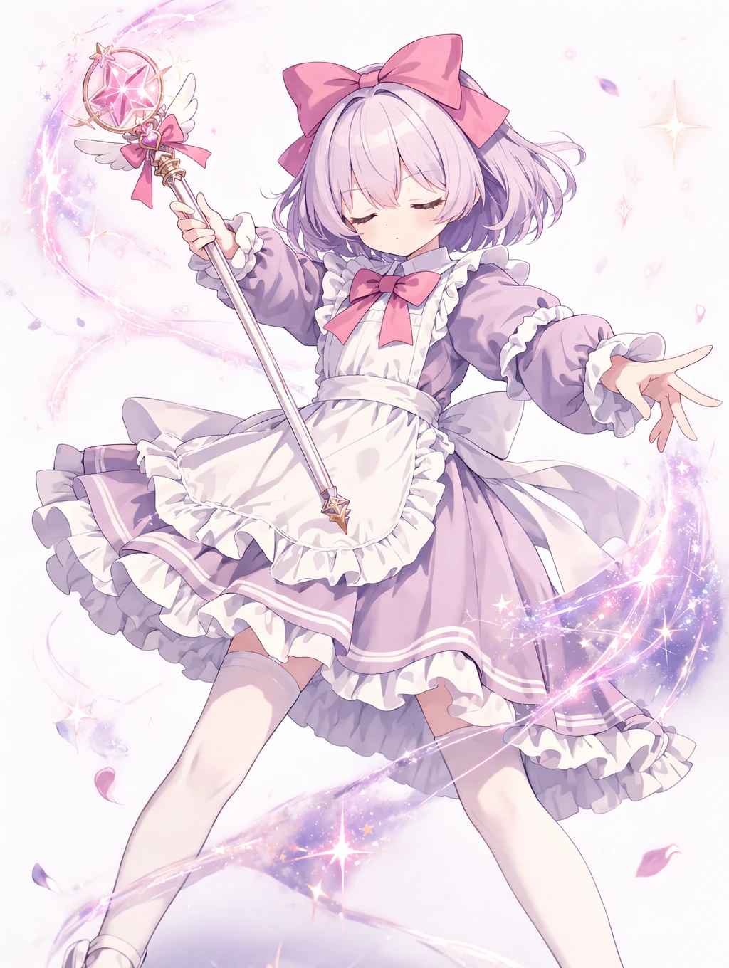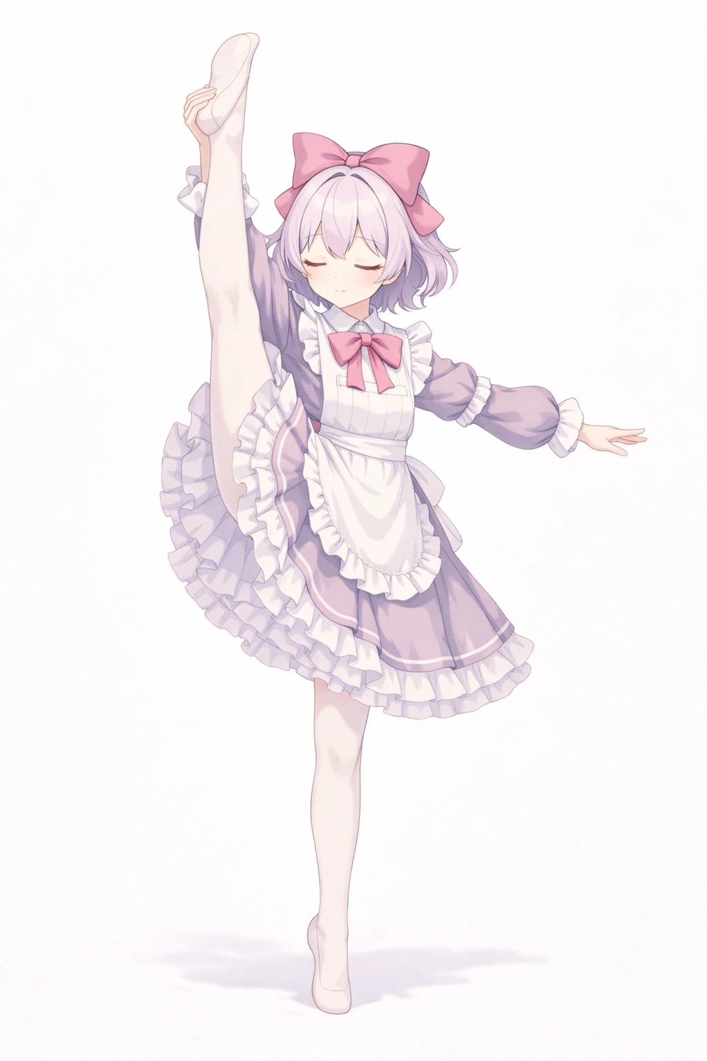 Eyes Closed,Pale purple short bob,,big pink ribbon on head,Pale Purple Maid Outfit,white ruffle apron,ribbons on the chest,long sleeve,Ruffle Skirt,,wears pale purple knee-high socks and lace-up boots,nsfw,( tweak:1.5),(:1.2),( :1.2),( :1.5),(Black :1.2),(spread :1.2), trail,Traces of ,Excitement,Show me and ,pale purple pubic hair,Light Purple Laced Bra,slide down pale purple panties,pale purple garter belt