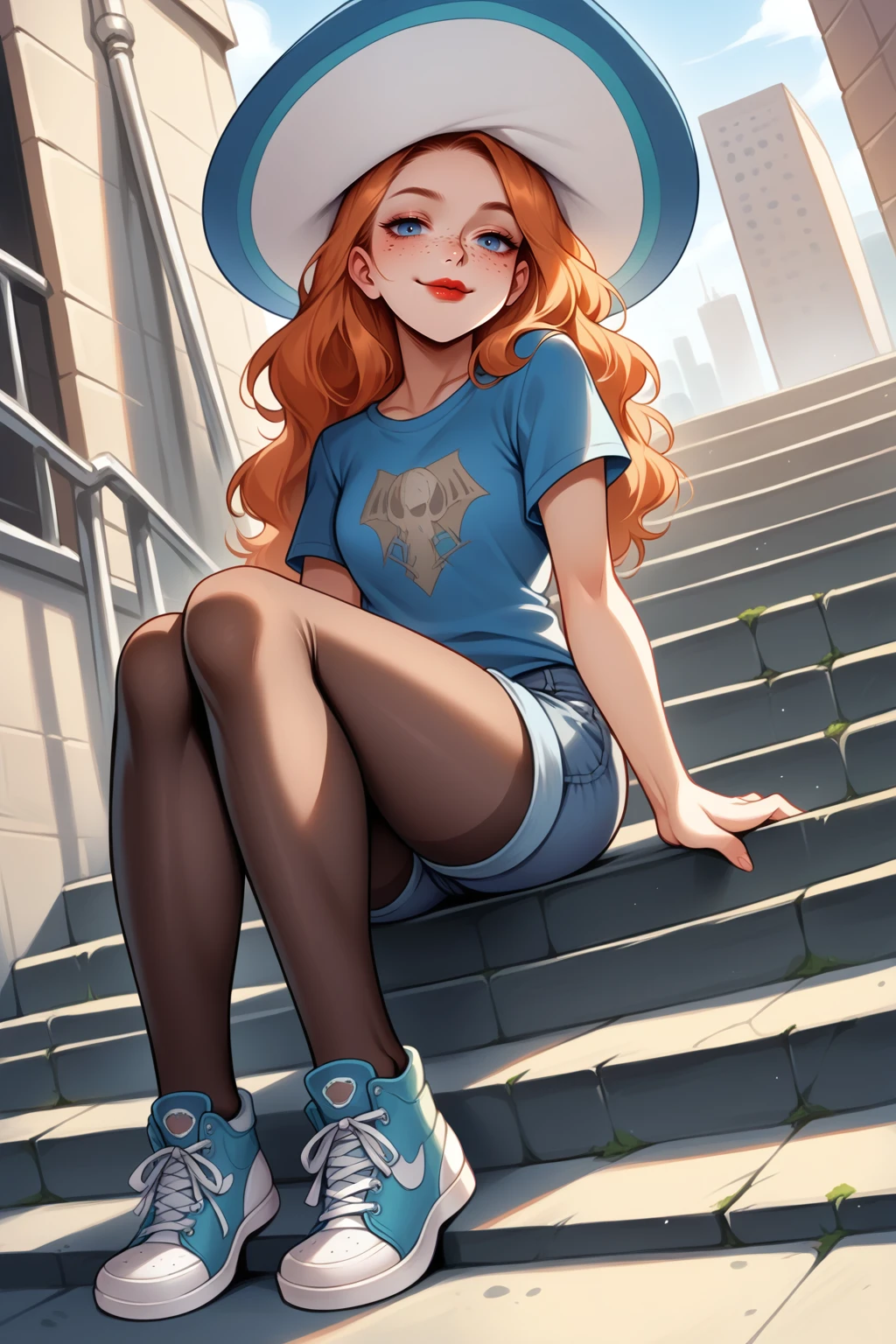 Main Prompt: NSMeiPortia, long hair, blue eyes, freckles, lipstick, orange hair