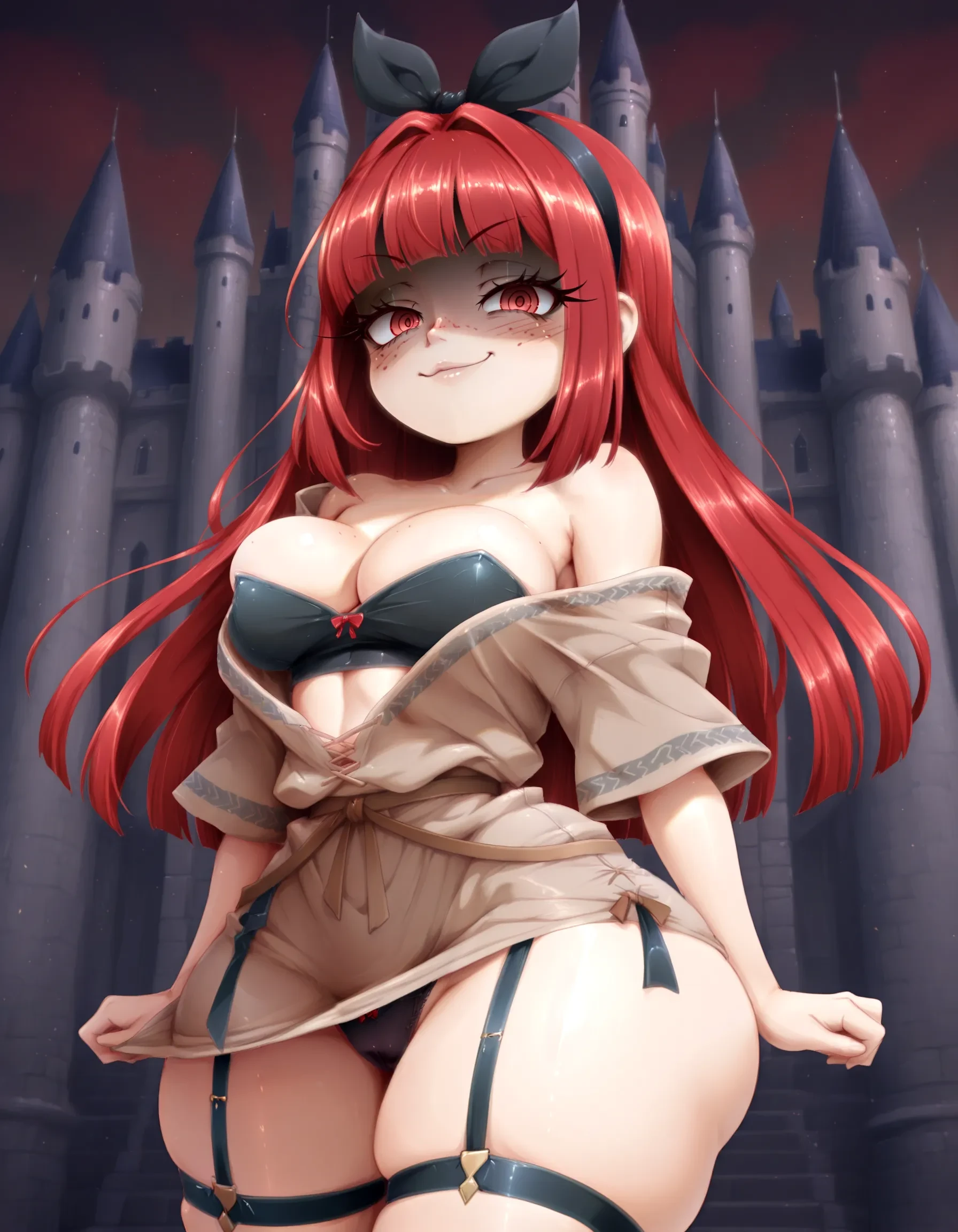 cleavage / large breasts / huge breasts – To emphasize the central stylistic traits.