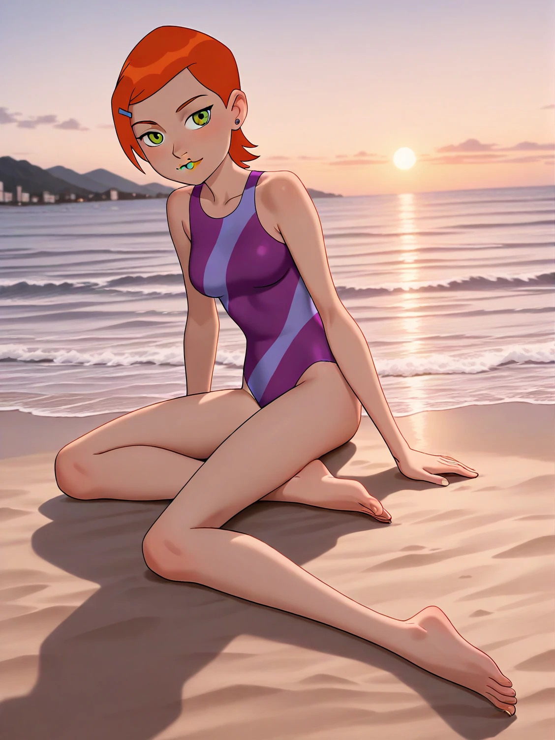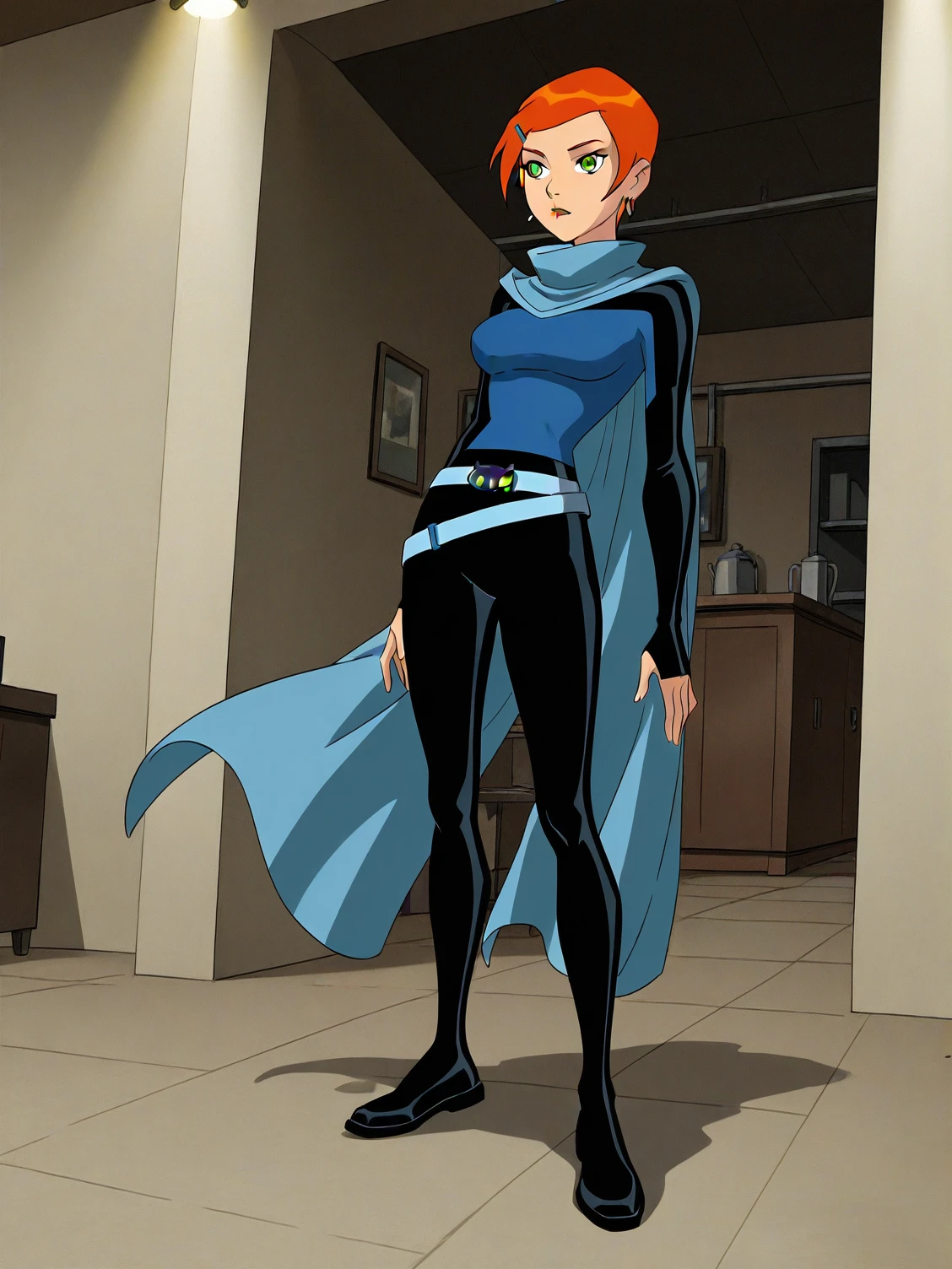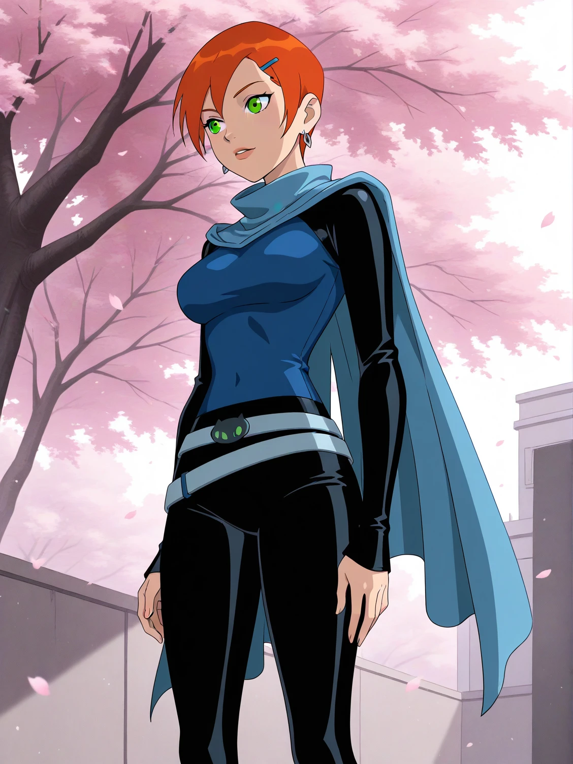 b10-gwen, red hair, short hair, green eyes, hairclip