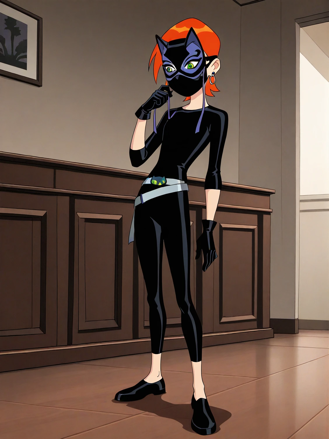 luckygirl amulet black bodysuit sash black flats black gloves mask