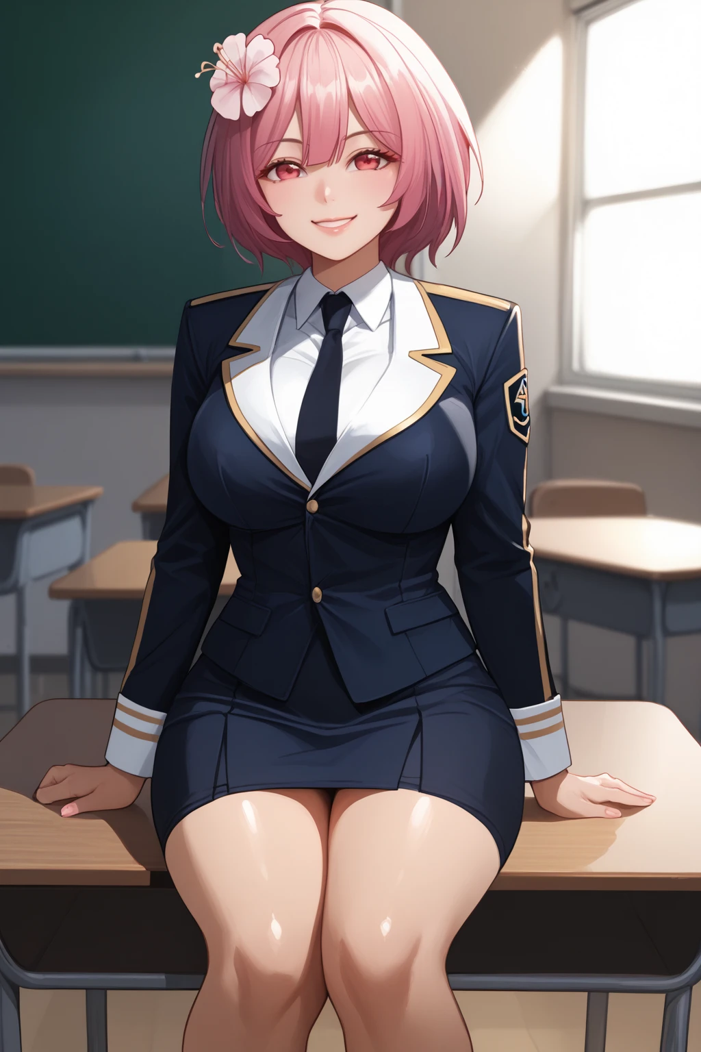 Trigger School : 1girl, short hair, bangs, flower, school uniform, dress
