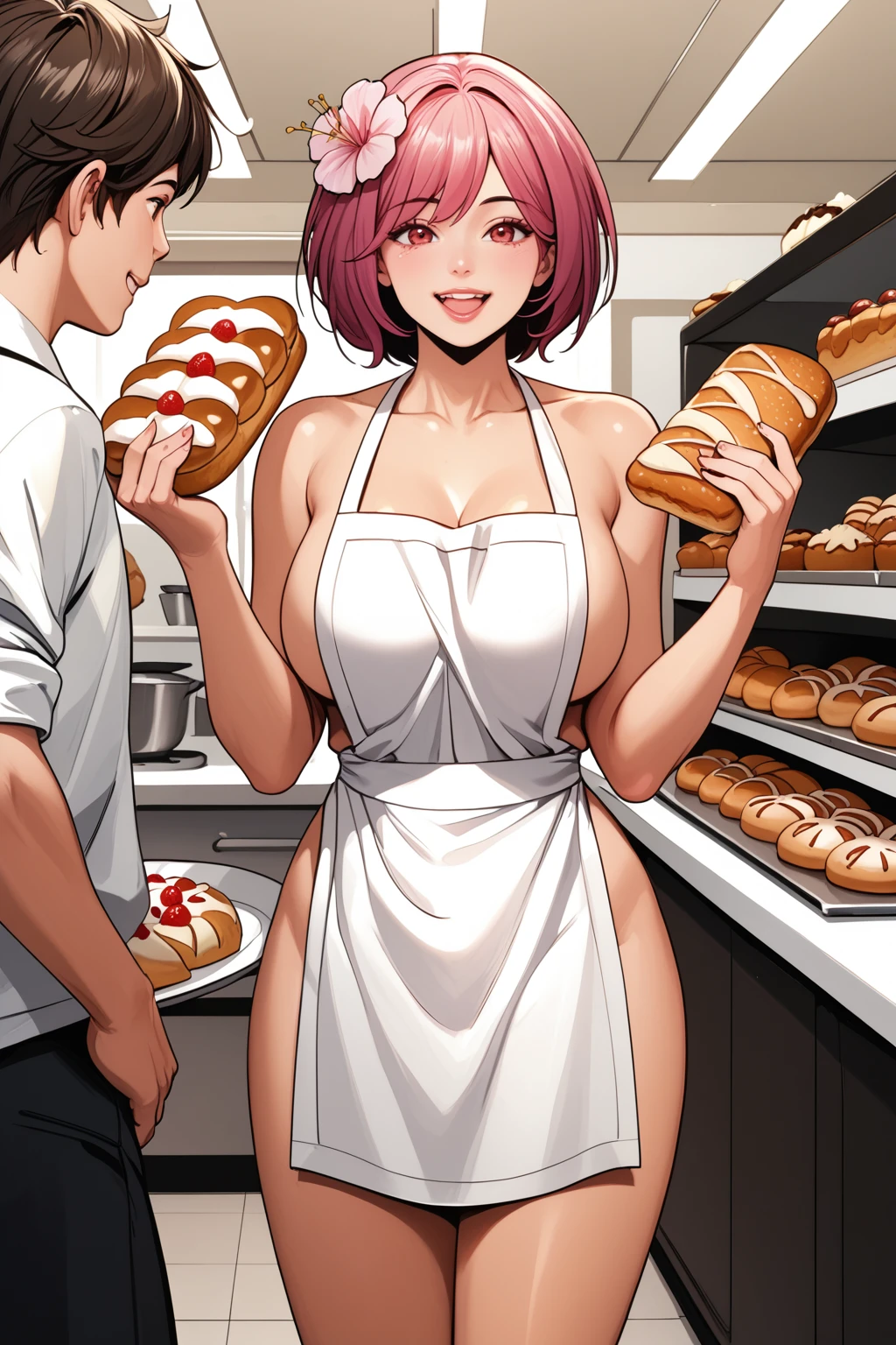 Trigger Sexy oversize shirt : 1girl, short hair, bangs, flower, t-shirt, short sleeves, wide sleeves, oversized shirt