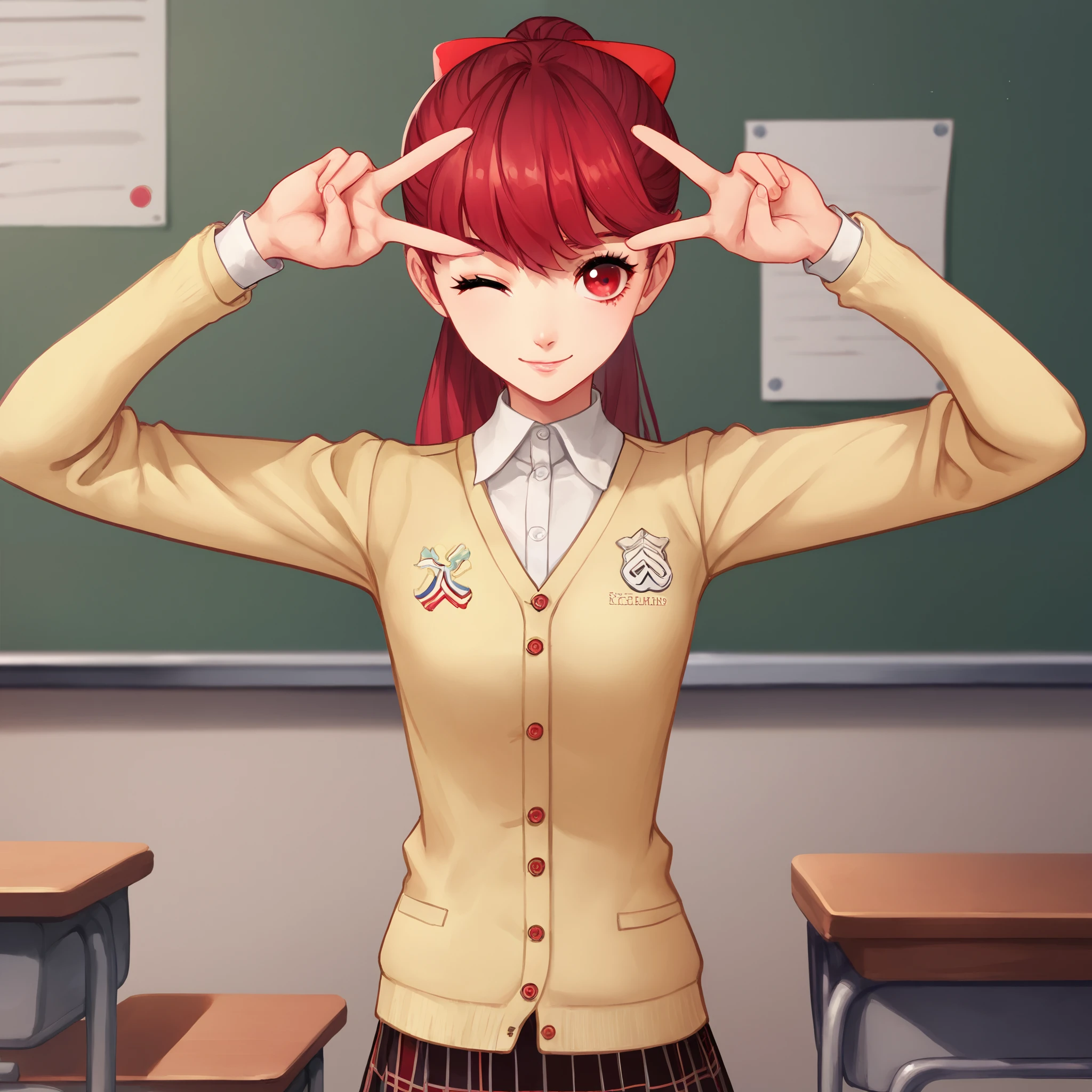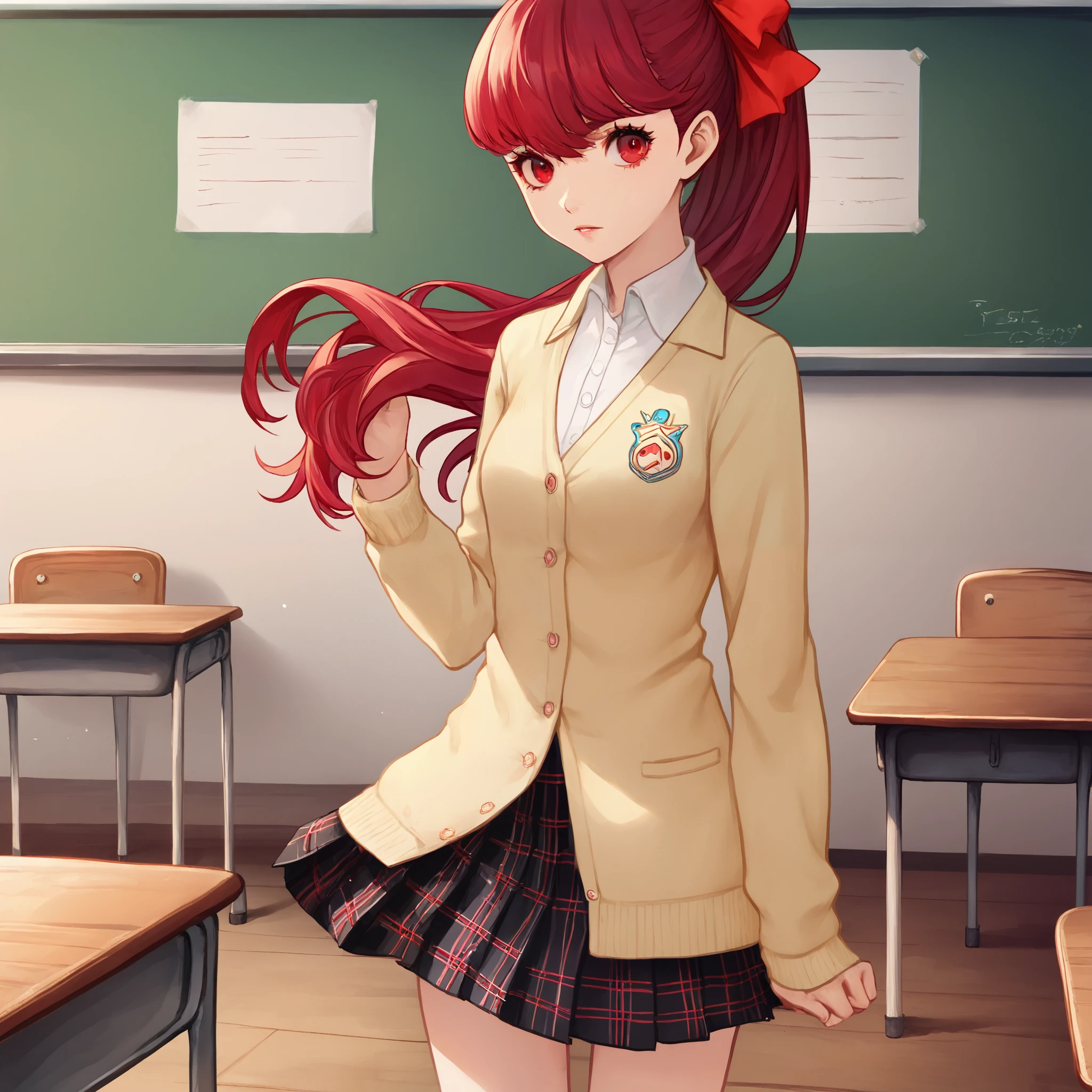 Violet : yoshizawa kasumi, yoshizawa violet, long hair, ponytail, red hair, hair ribbon, red eyes, choker, black jacket, black leotard, red gloves, black thighhighs,School Unifrom : yoshizawa kasumi, schoolxl, long hair, ponytail, red hair, hair bow, red eyes, school uniform, shuujin academy school uniform, black jacket, pleated skirt, pantyhose,Summer Unifrom : yoshizawa kasumi, summerxl, long hair, ponytail, red hair, hair ribbon, red eyes, white shirt, collared shirt, yellow cardigan, pleated skirt, school uniform, shuujin academy school uniform,Bikini : yoshizawa kasumi, swimxl, long hair, ponytail, red hair, hair bow, red eyes, bare shoulders, short sleeves, frilled bikini, pink bikini,Version 1
