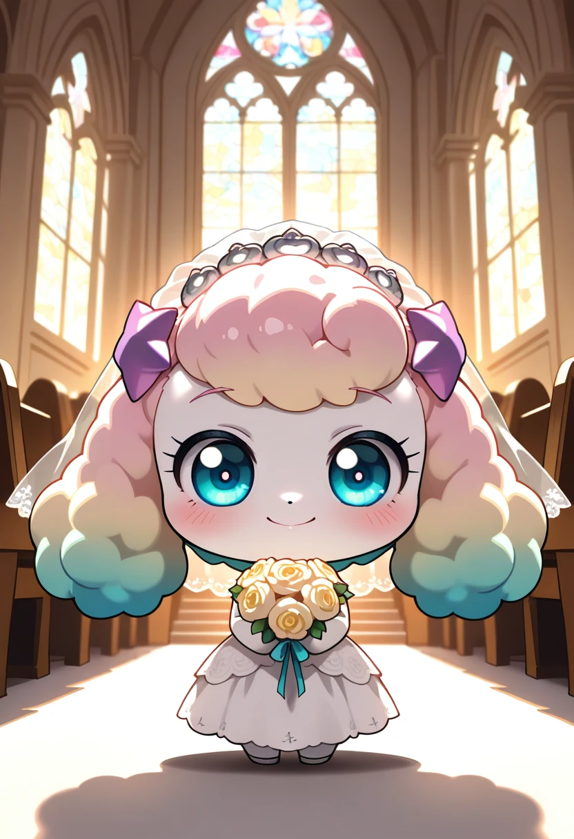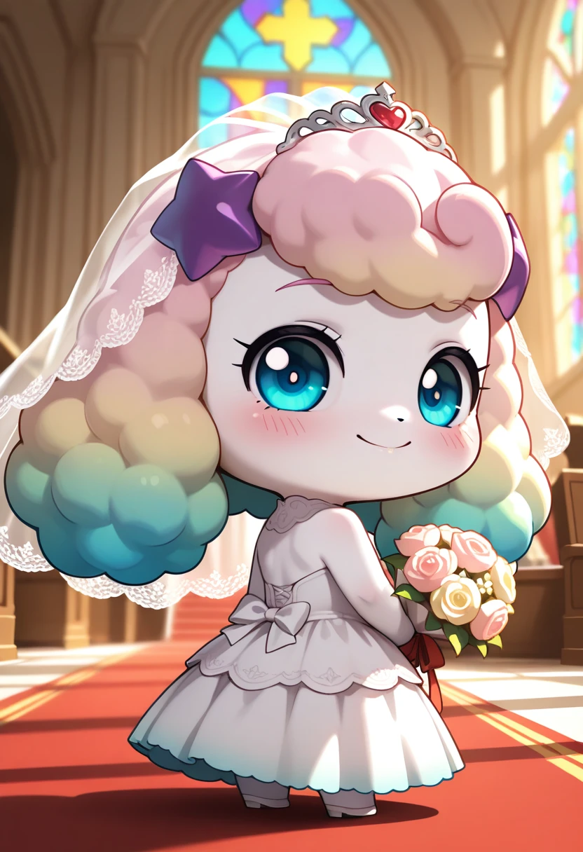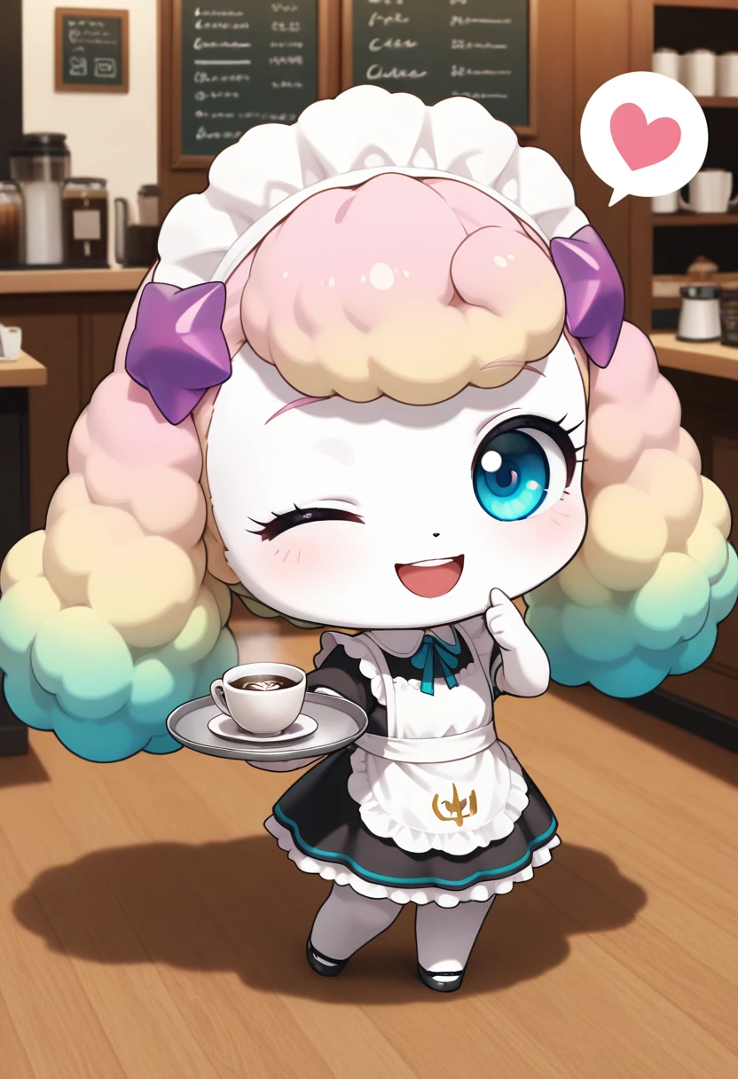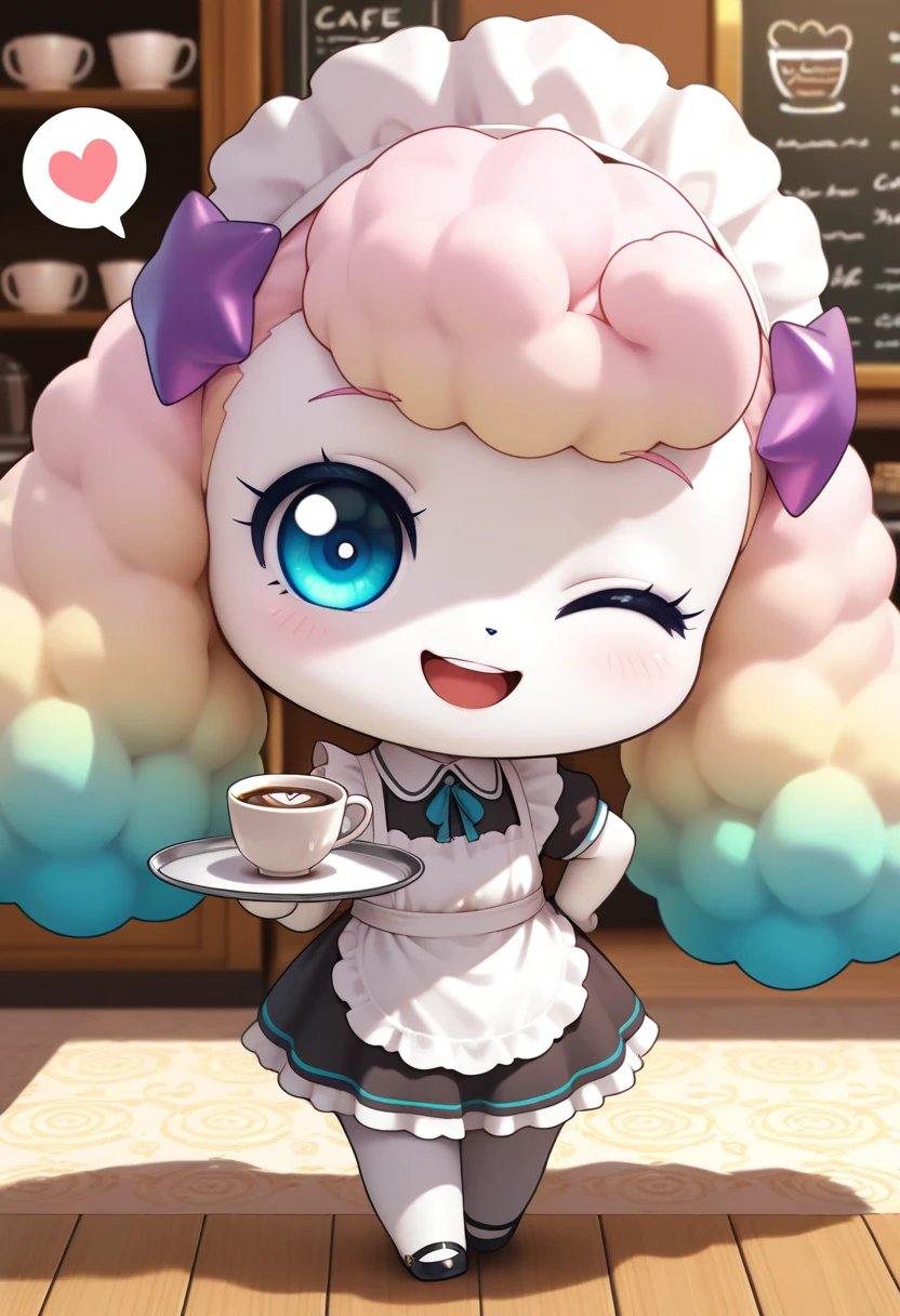 prompts: fluffyping, multicolored hair, blue eyes, white dress, hair ornament, white legwear, white skin, chibi, furry,