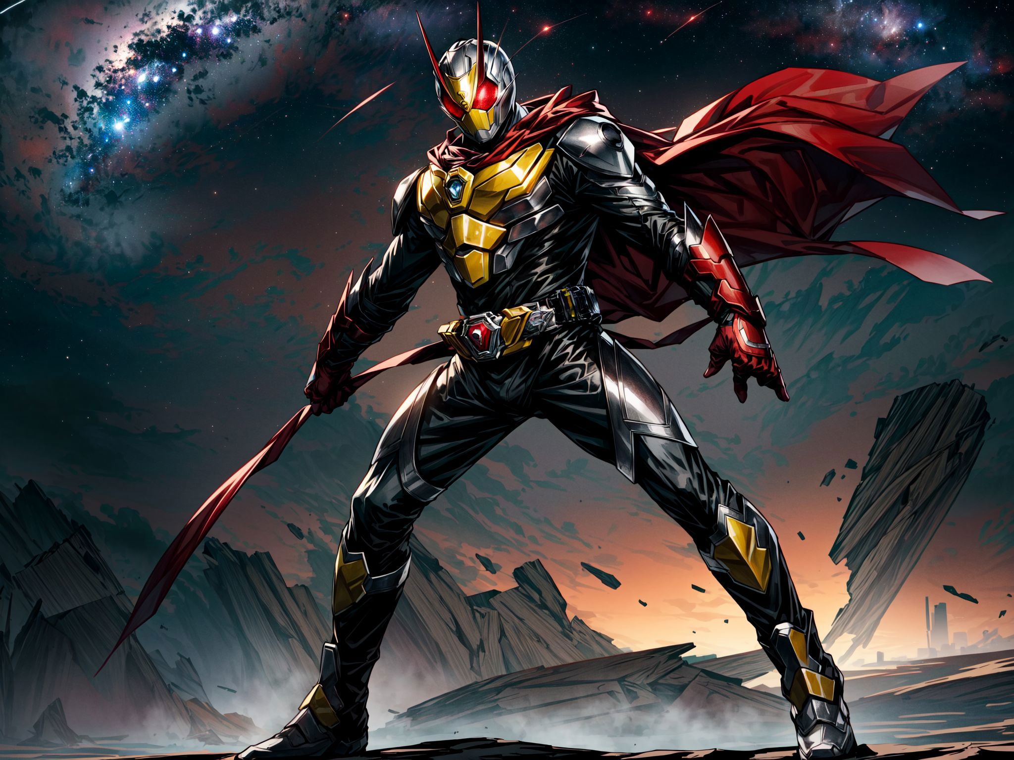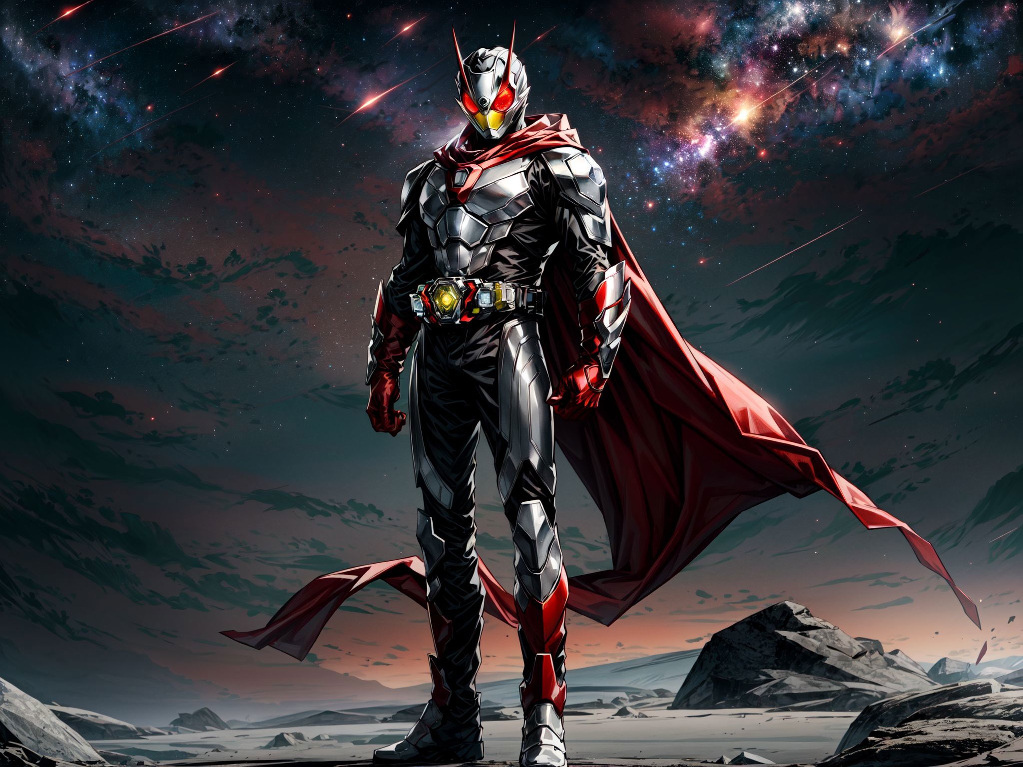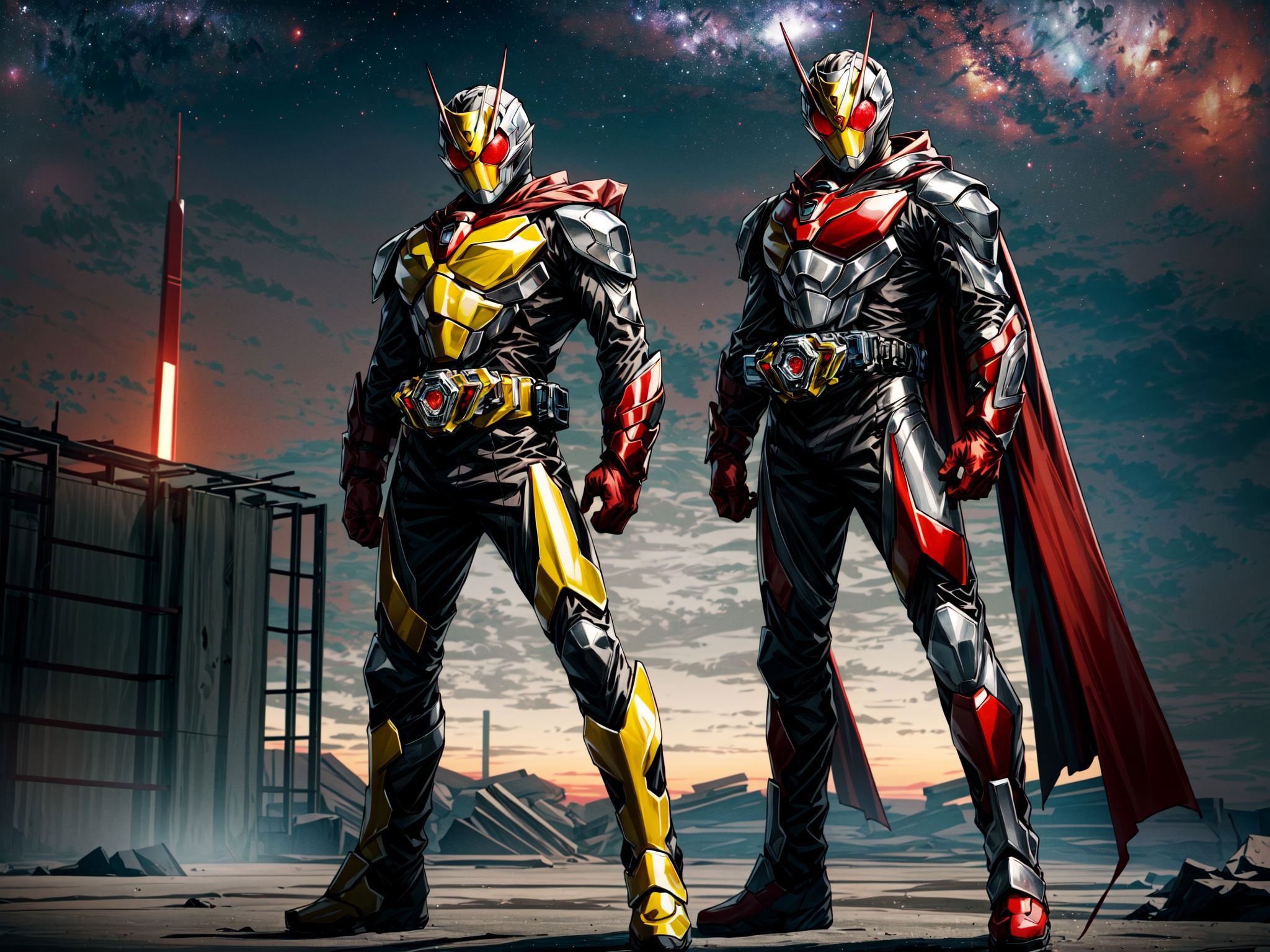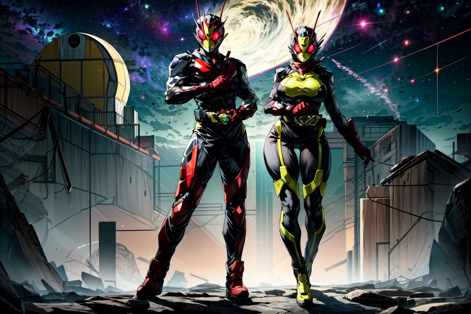 A LoRA for Kamen Rider Zero Two, with both male and female forms in mind