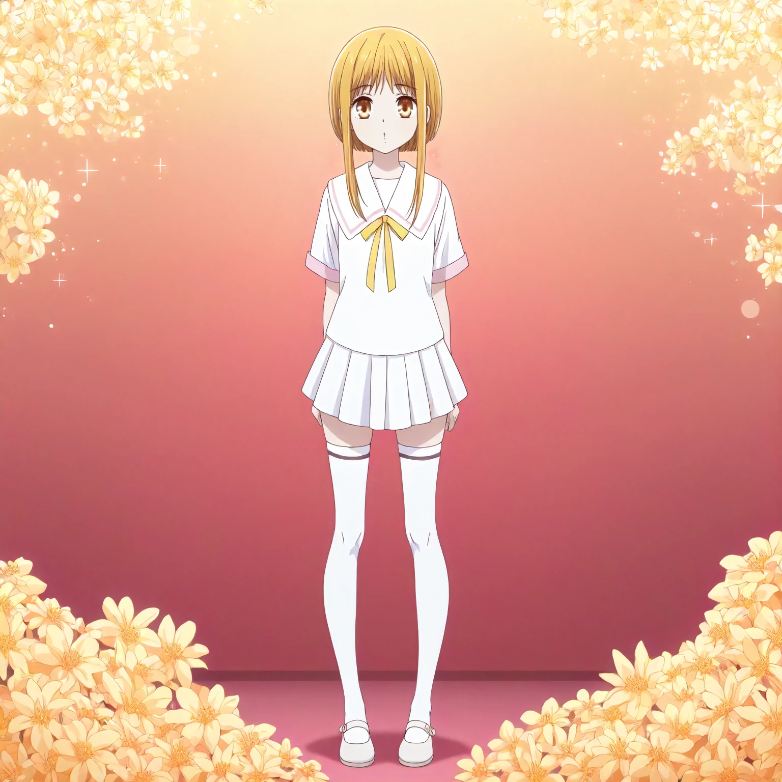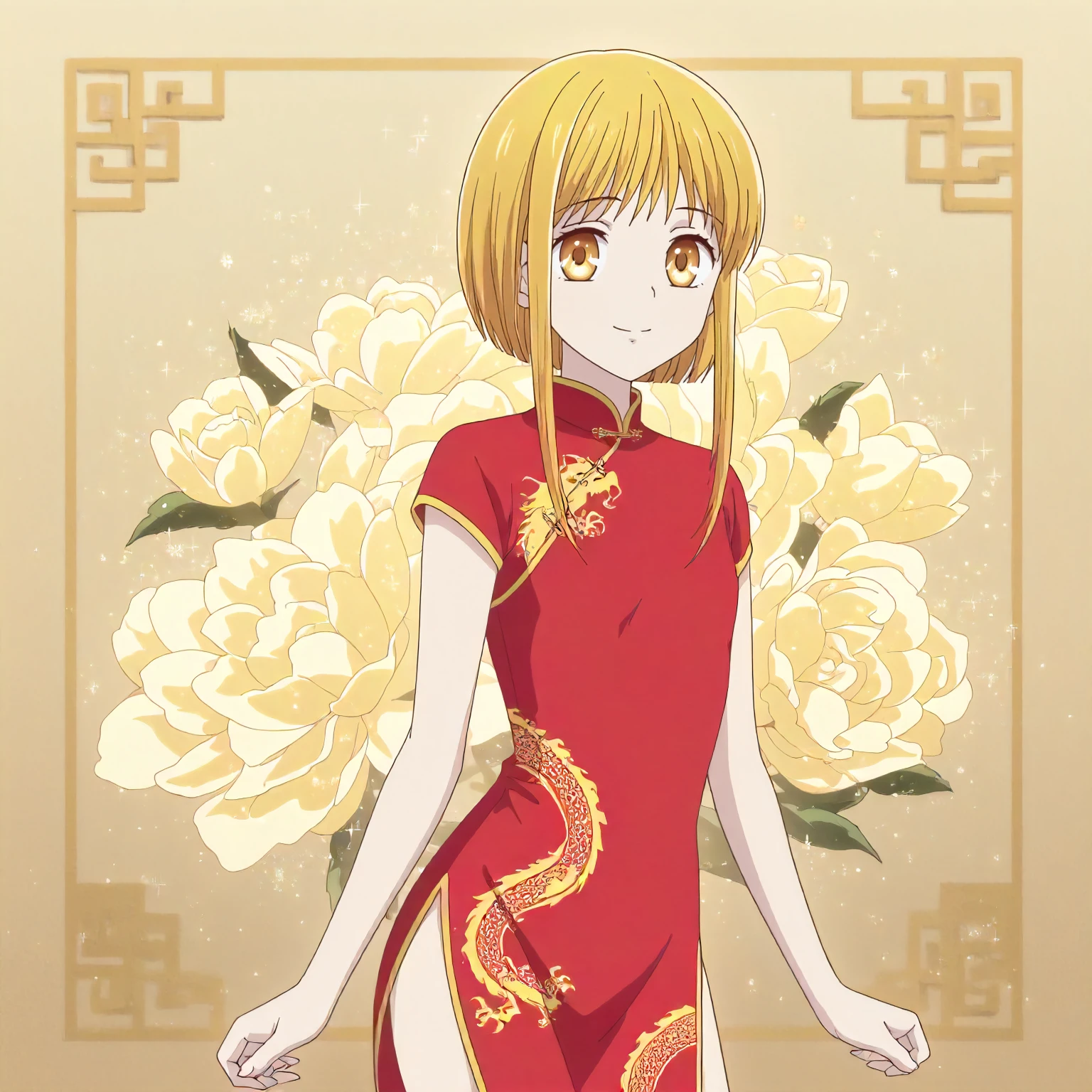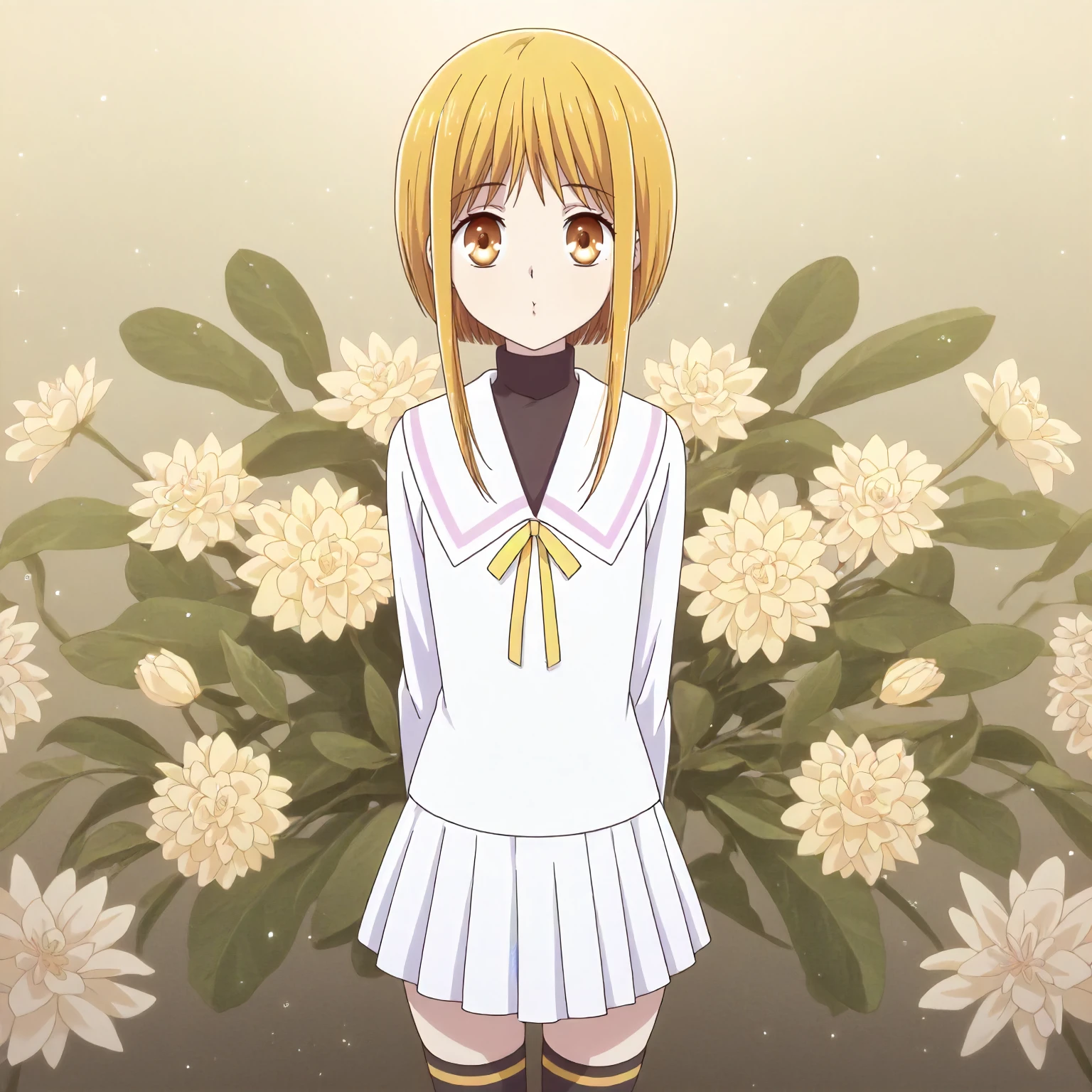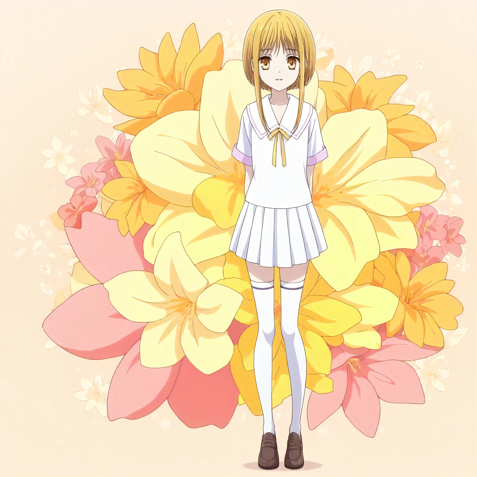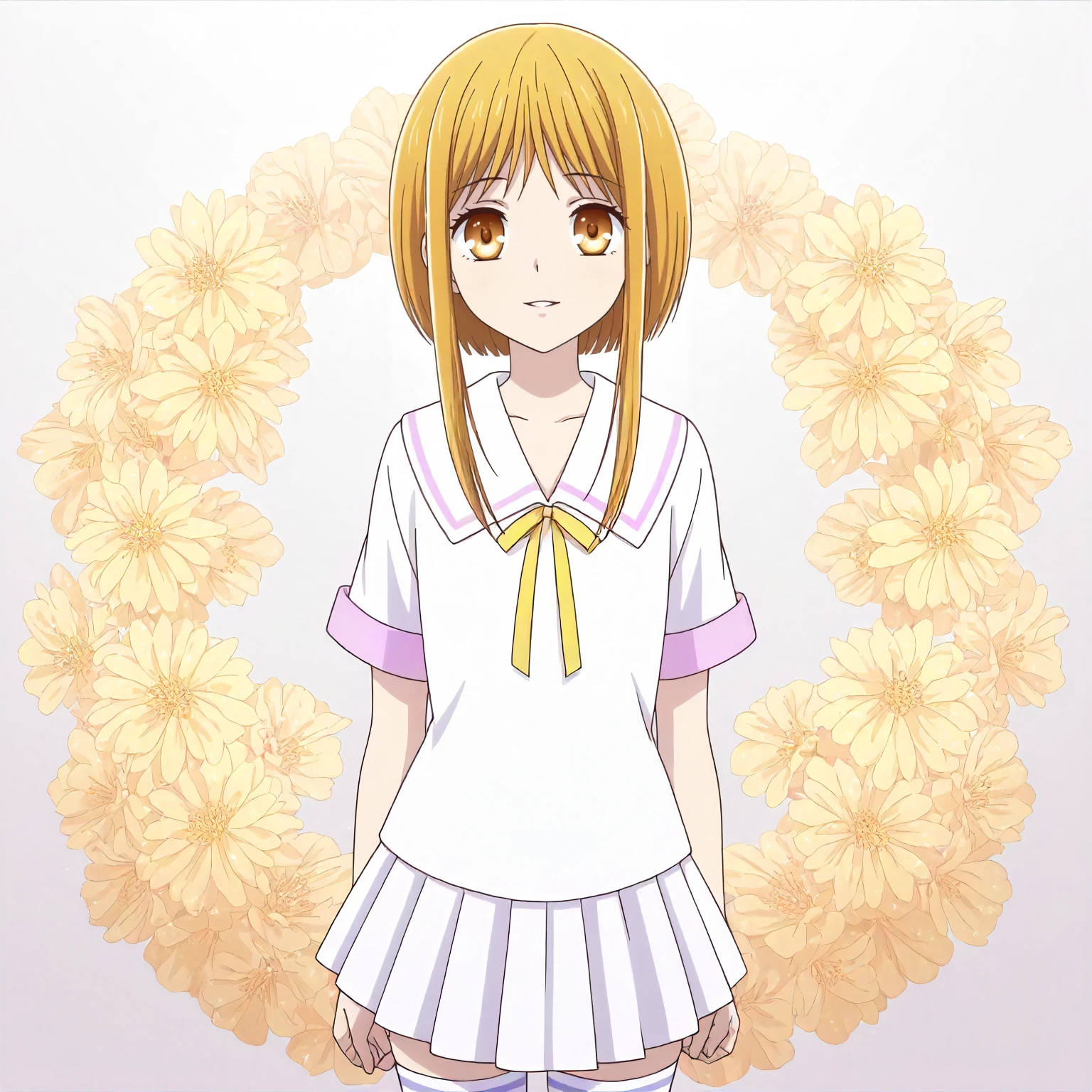 anime coloring, soma_kisa\(fruits_basket\),1girl,blonde hair,short hair with long locks,brown eyes,