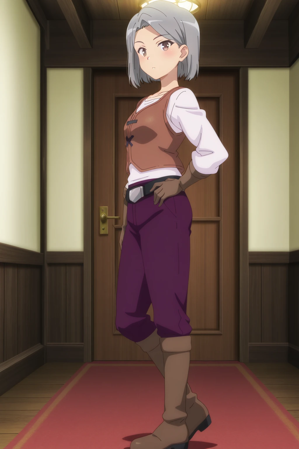— Don’t let the calm eyes and tidy bob fool you—Rebecca is the desert rose of the guild hall, sharp as her blade and twice as reliable. Whether she’s taking on a bounty or keeping rowdy adventurers in line, this silver-haired warrior balances grace and grit with effortless cool. With that ever-composed smirk and practical leather gear, she’s the kind of woman who doesn’t need to shout to command the room. Strong, steady, and quietly badass—when Rebecca’s on your side, you know things are about to get done right. 🗡️🔥