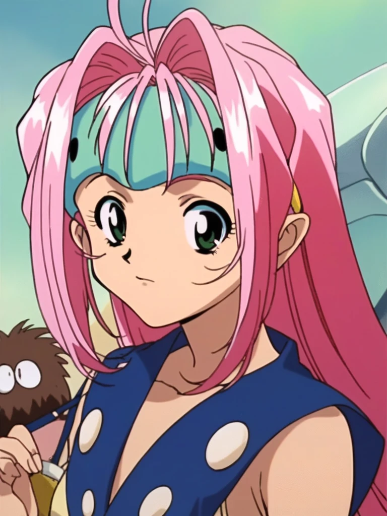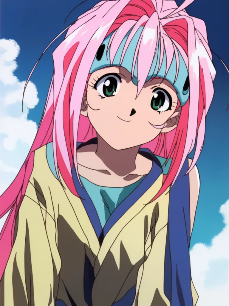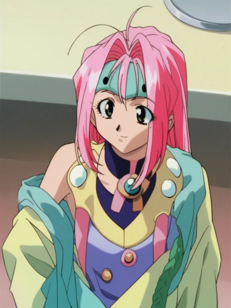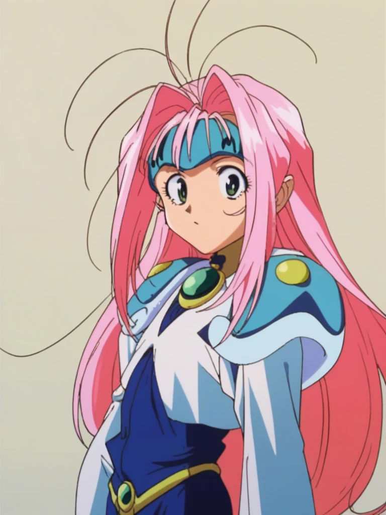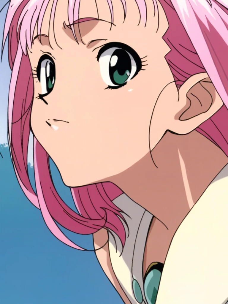 macross7_mylene, long hair, green eyes, pink hair, 1990s (style),