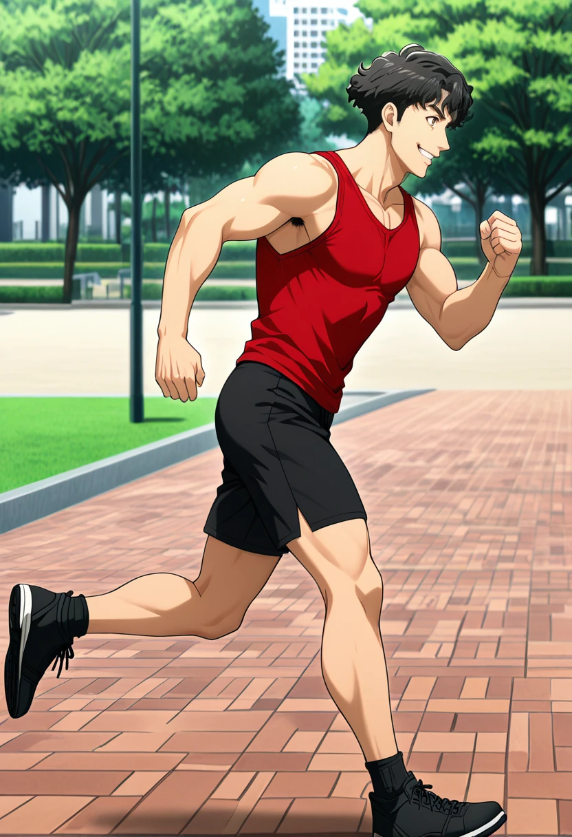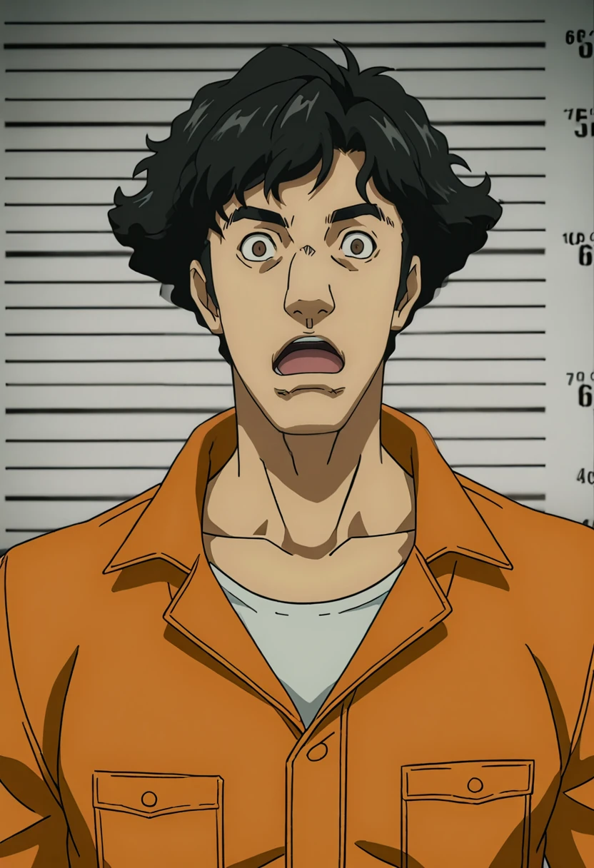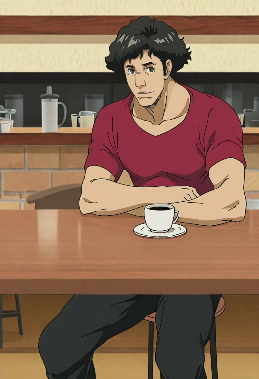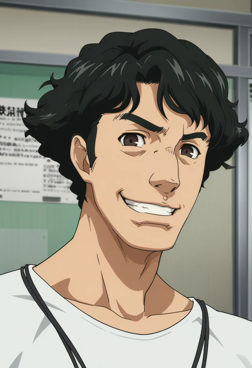 SuguruKamoshida, 1boy, solo, black_hair, wavy_hair, brown_eyes, anime_coloring, anime_screenshot