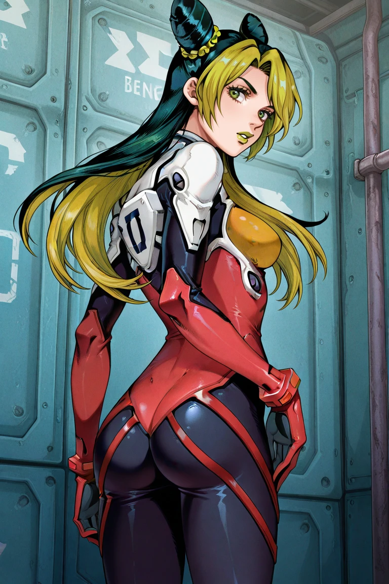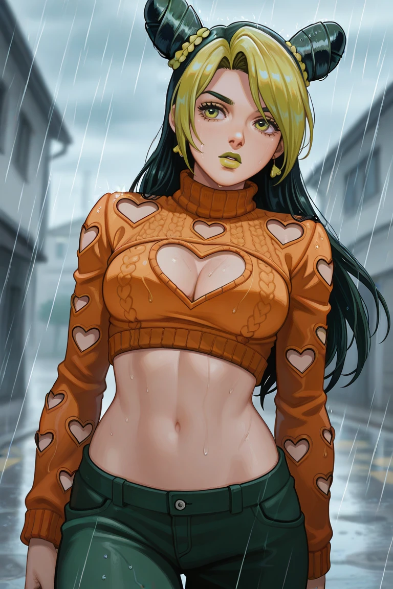 long hair, double buns, two-tone hair, green lips, heart cutouts, orange sweaterI used T-noobnai3 for my preview images.