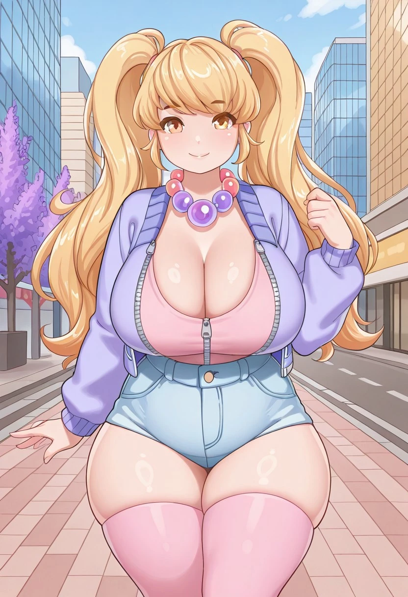 Vanessa_BC, blonde hair, long hair, twintails, amber eyes, massive breasts, chubby, wide hips, thick thighs