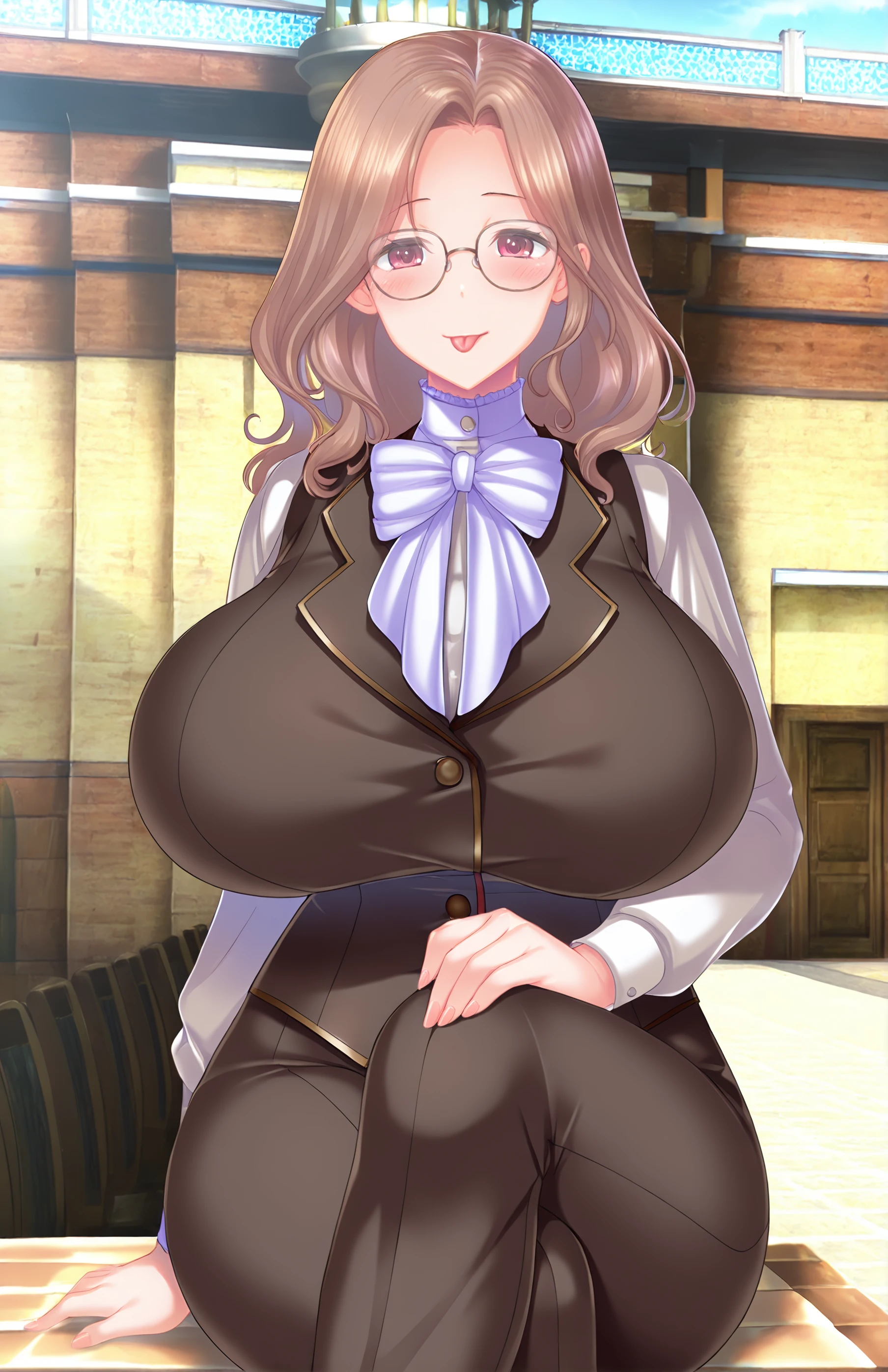 LoreliaFramboiseSheba, , brown hair, shirt, red eyes, bow, glasses, , vest, pants
