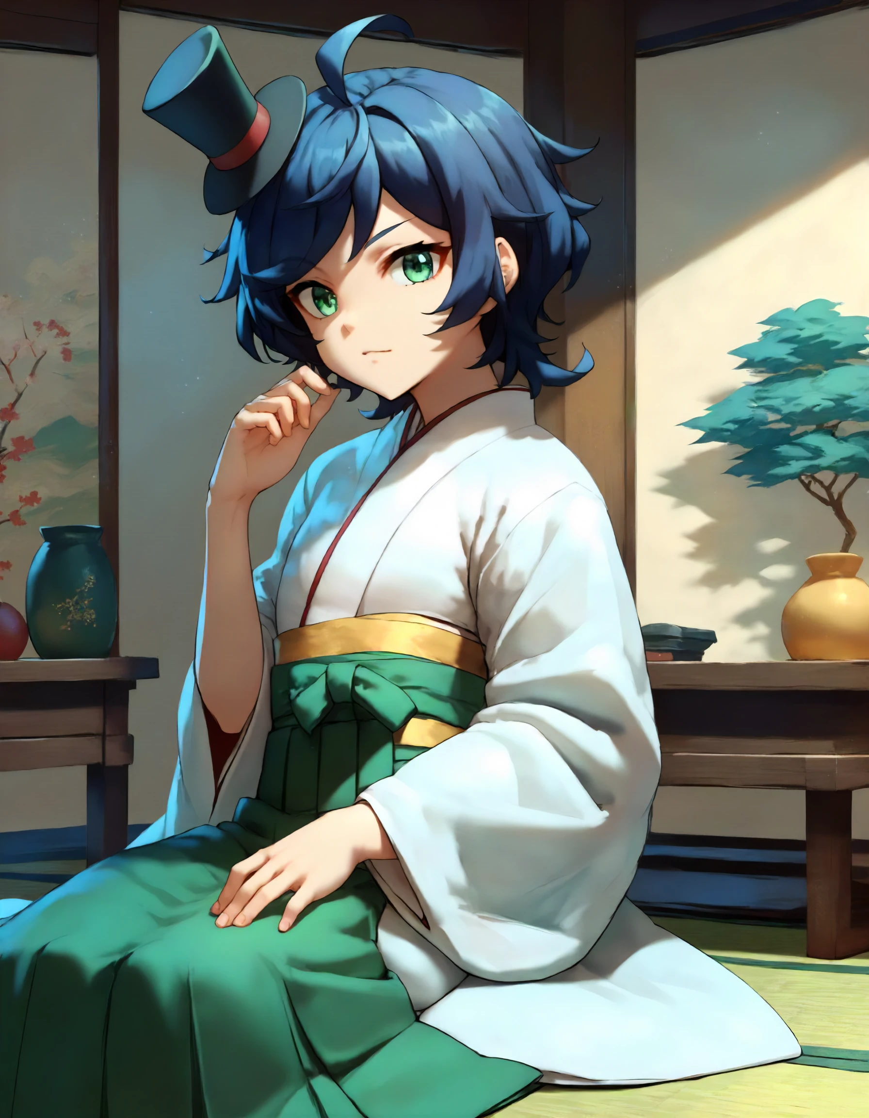 japanese clothes,white kimono,green hakama skirt,